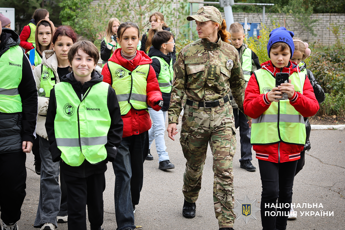Екскурсія залишила у дітей яскраві враження і на згадку вони подарували поліцейським заздалегідь підготовлені тематичні малюнки, а відомій волонтерці передали корм для тварин у притулках.