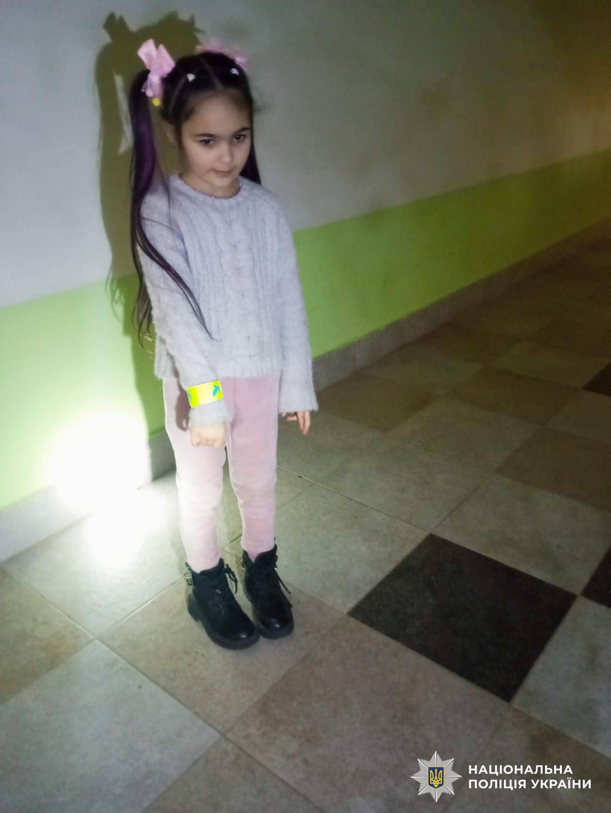 Окрім того, поліцейська нагадала дітям про важливість використання світловідбивних елементів (флікерів) у темну пору доби, після чого малеча провели дослід із використанням ліхтарика та світловидбиваючого елемента.