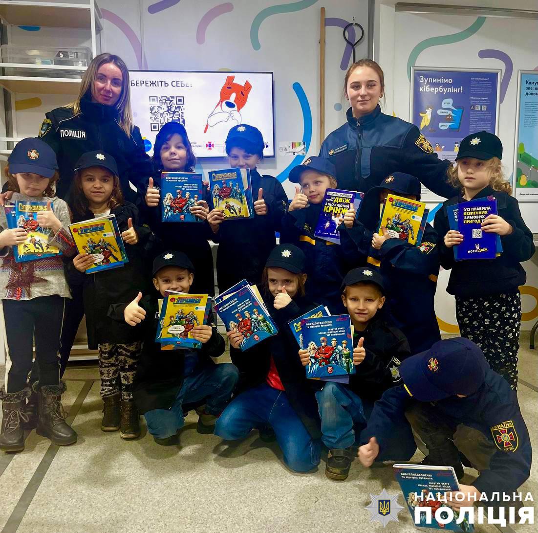 Під час уроку учні мали змогу побути поліцейськими та рятувальниками, примірявши копії форменого одягу.