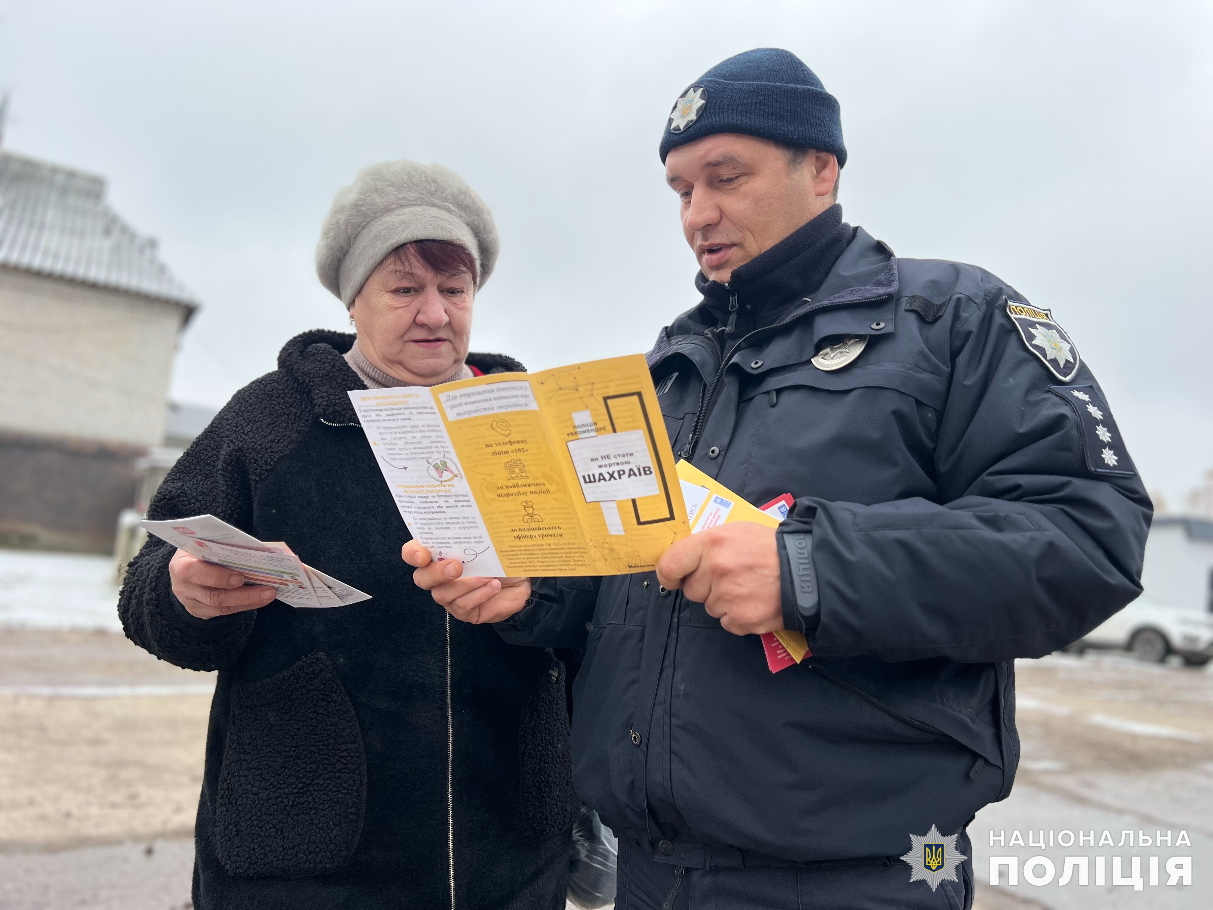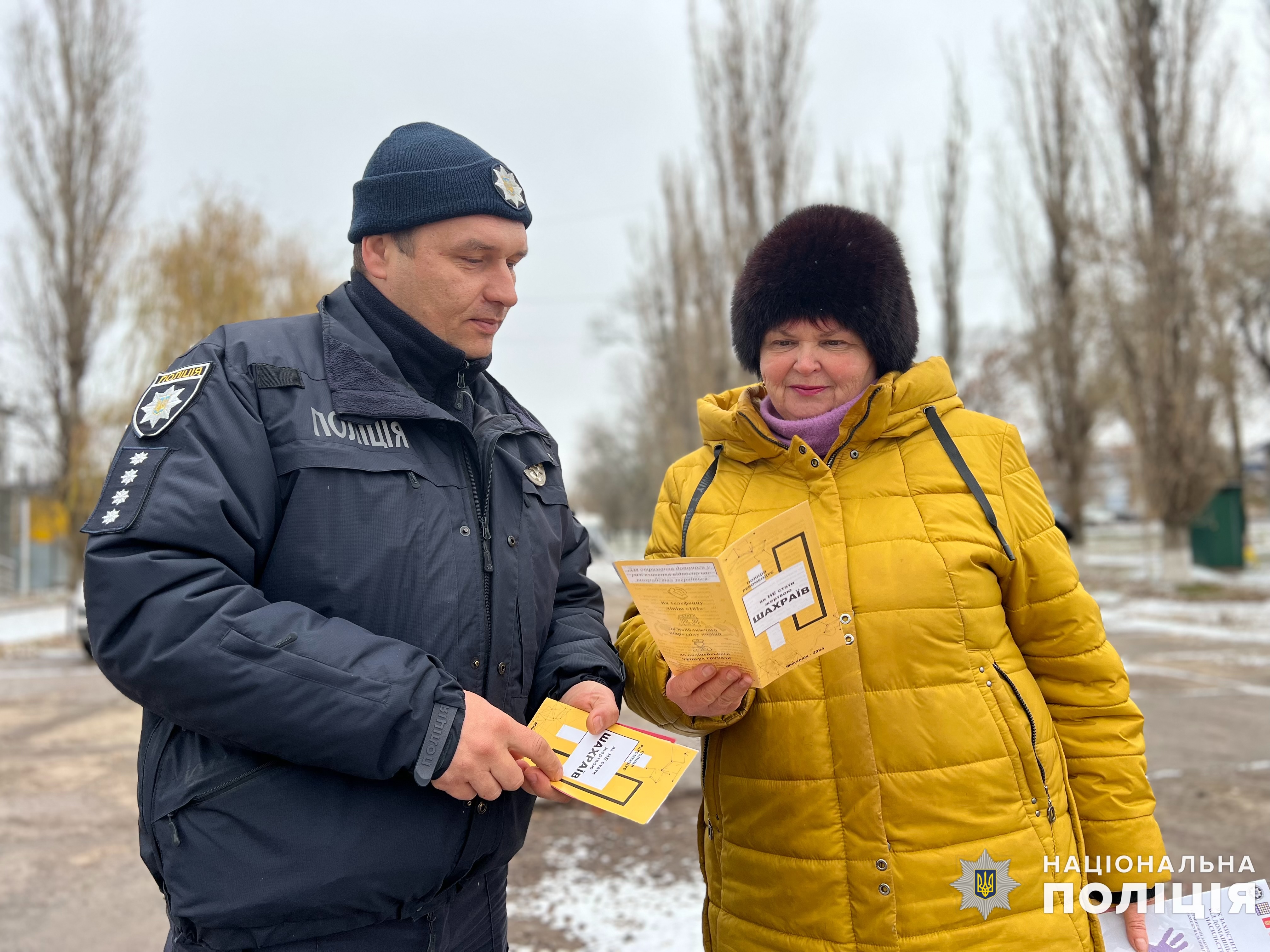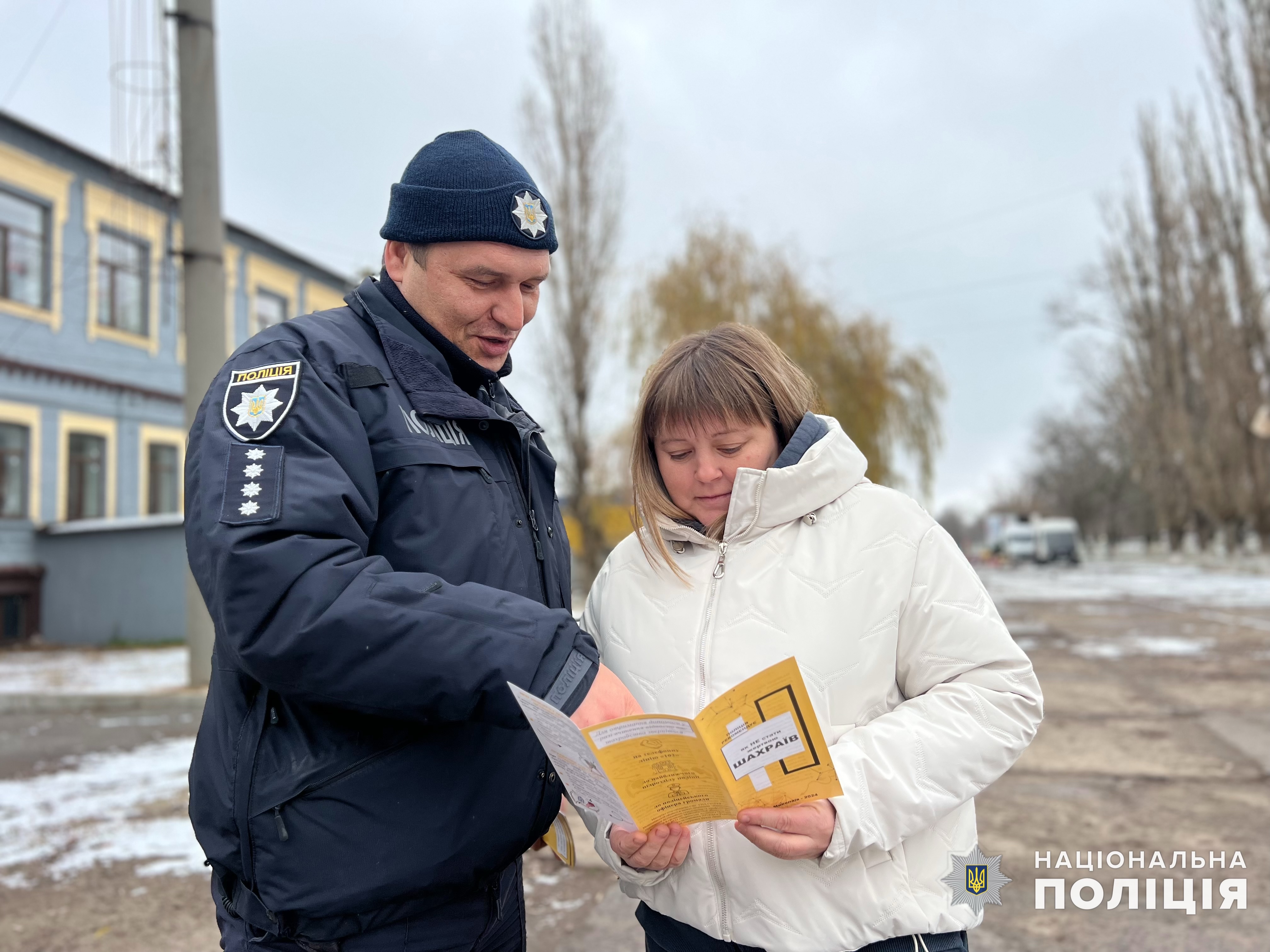 Щоб розпізнати шахрайство та відразу йому протидіяти, офіцер громади роздав людям памʼятки, у яких описуються різновиди шахрайських схем та рекомендації як їх уникнути.