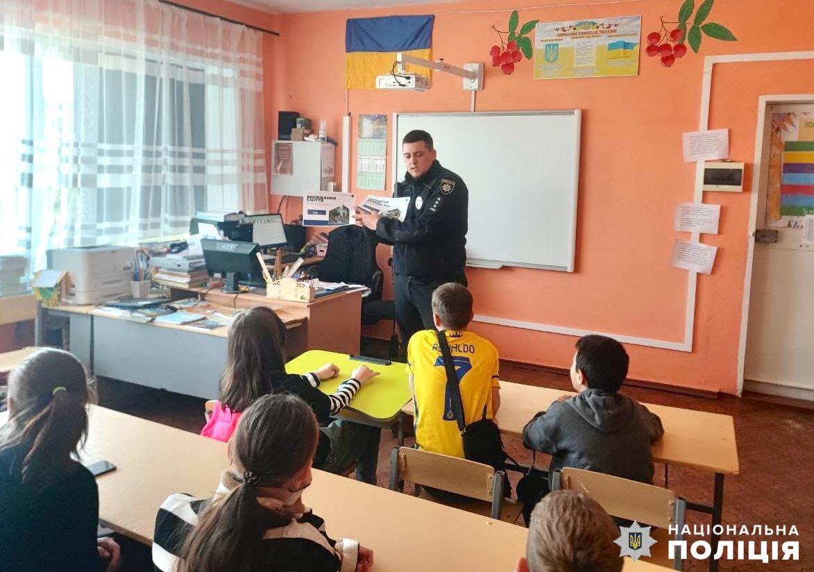 Також поліцейський розповів дітям про шкідливий вплив тютюнопаління на організм, особливо, у юному віці. Окрему увагу приділили мінній безпеці. Офіцер пояснив, як поводитися при виявленні підозрілих предметів, чому не можна наближатися до незнайомих об’єктів і що робити у разі небезпечної знахідки.