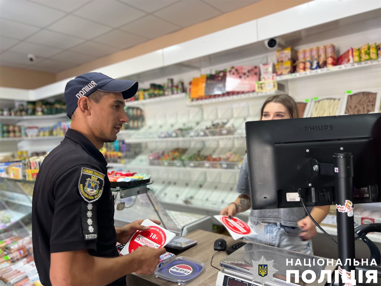 Вбережемо молодь від шкідливих звичок: у Баштанському районі поліцейські продовжують проводити профілактичну роботу із недопущення продажу алкоголю та тютюну неповнолітнім