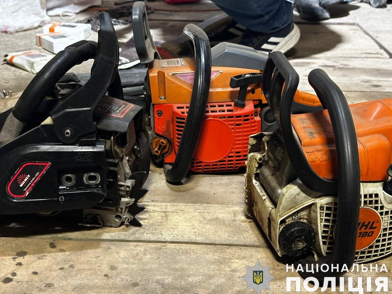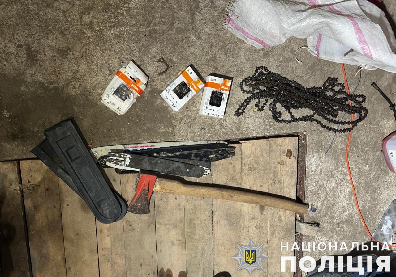Того ж дня слідчі райуправління за підтримки роти поліції особливого призначення провели санкціоновані обшуки за місцем мешкання двох фігурантів. Під час обшуків на території домоволодінь та безпосередньо на місці скоєння злочину правоохоронці виявили та вилучили бензопили, сокири і транспортні засоби, які чоловіки використовували під час незаконної рубки та перевезення дерев, а також спилену деревину.
