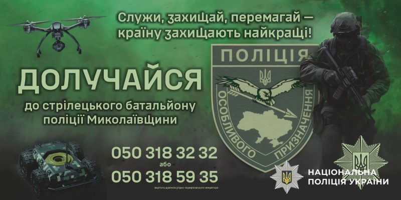 Головне управління Національної поліції в Миколаївській області оголошує конкурс на службу в поліцію на посаду поліцейський підрозділу (полк, батальон, рота) поліції особливого призначення (стрілецький).