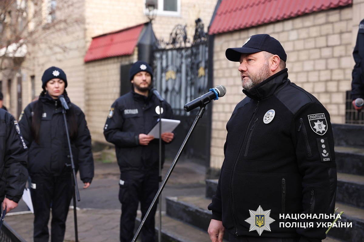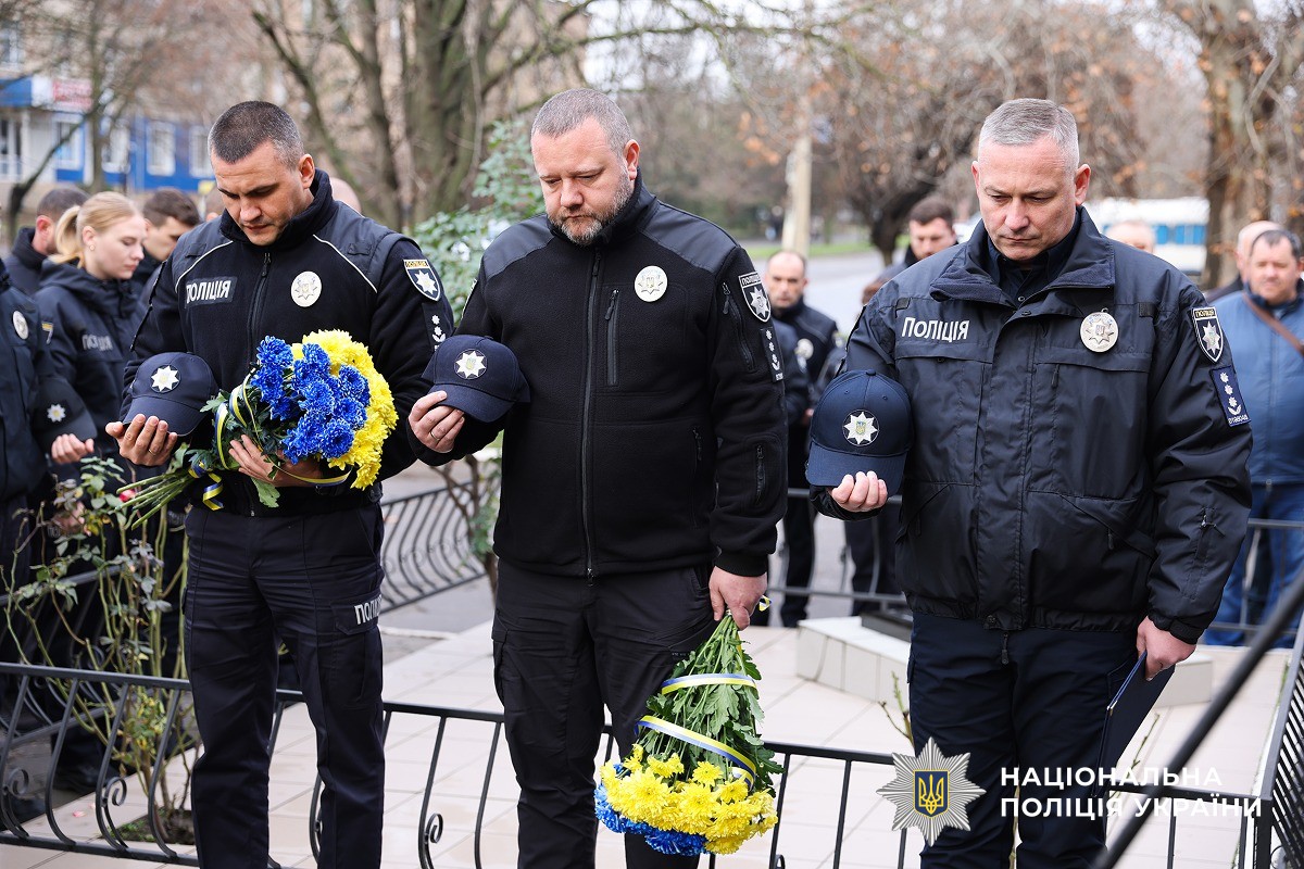 Відкрив меморіальну дошку заступник начальника Головного управління Національної поліції у Миколаївській області Олексій Попков.