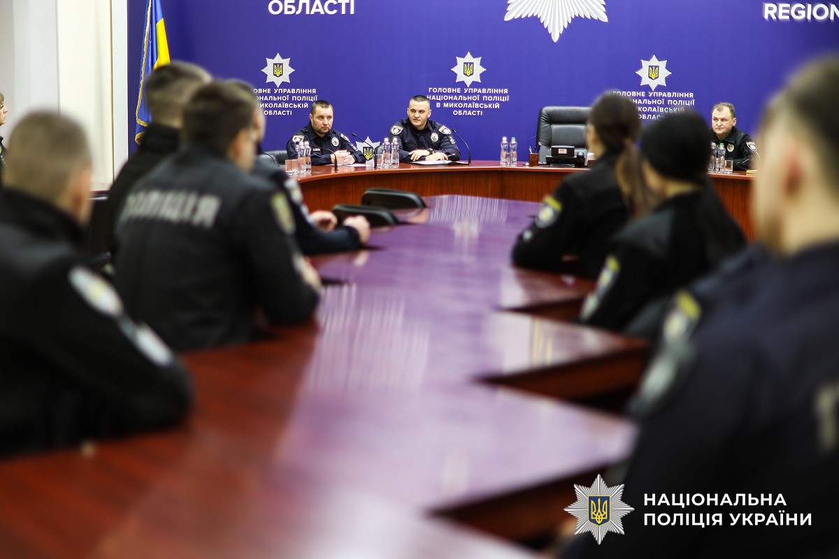 Перший заступник начальника Головного управління - начальник слідчого управління ГУНП в Миколаївській області Павло Воловик разом із начальником управління кадрового забезпечення Олегом Ключко привітали молодих колег із новим етапом у професійному житті.