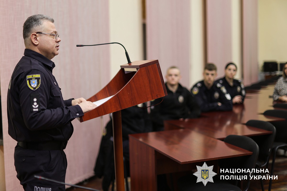 Начальник управління кадрового забезпечення Олег Ключко підкреслив важливість дотримуватися дисципліни та законності. Зокрема, співробітники управління головної інспекції та відділу запобігання корупції обласного главку поліції націлили молодих співробітників бути відповідальними та не нехтувати заходами особистої безпеки під час несення служби.