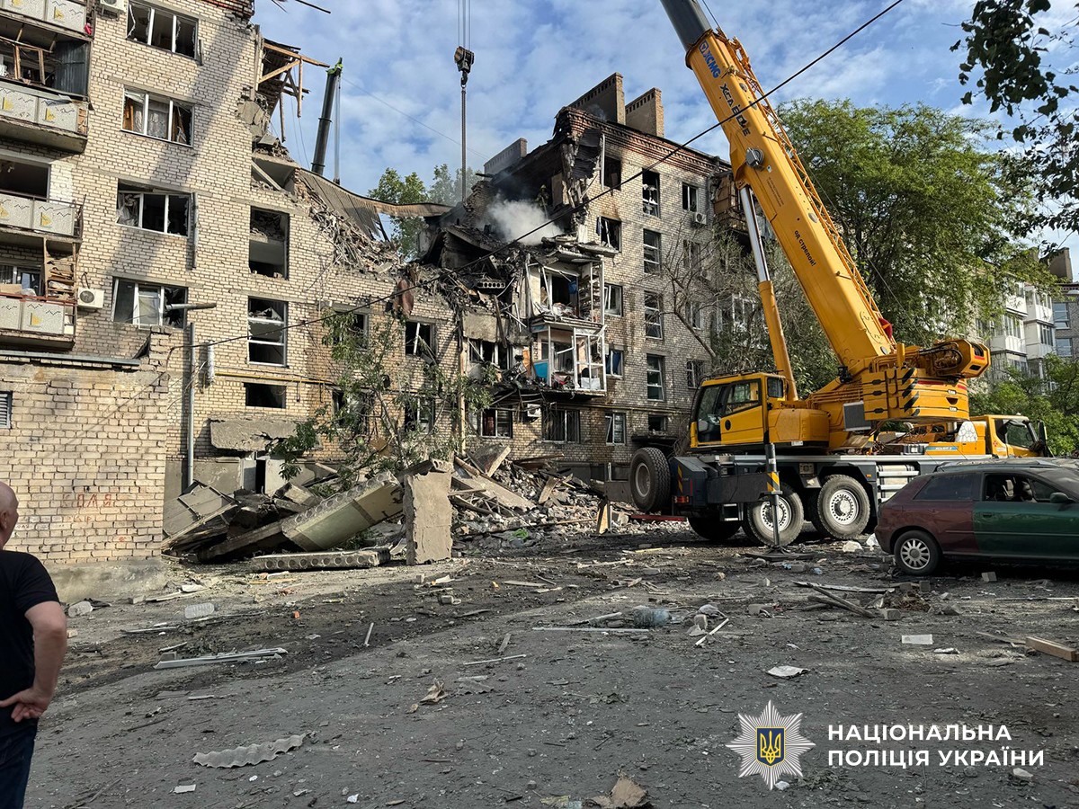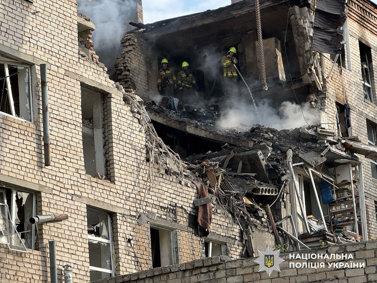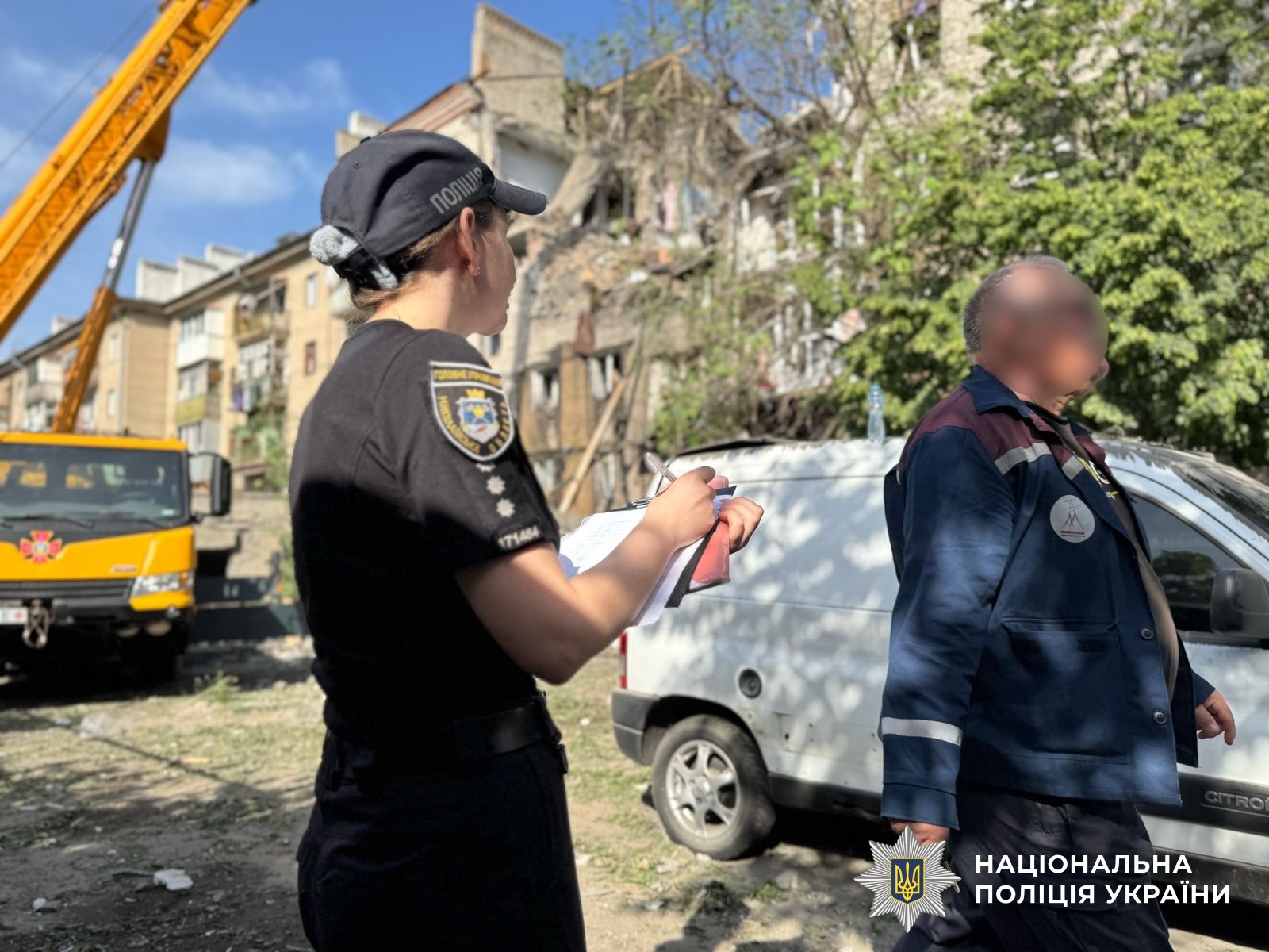 Рятувальники продовжують розбір завалів. Поліцейські здійснюють обхід постраждалих помешкань та фіксують наслідки руйнувань.