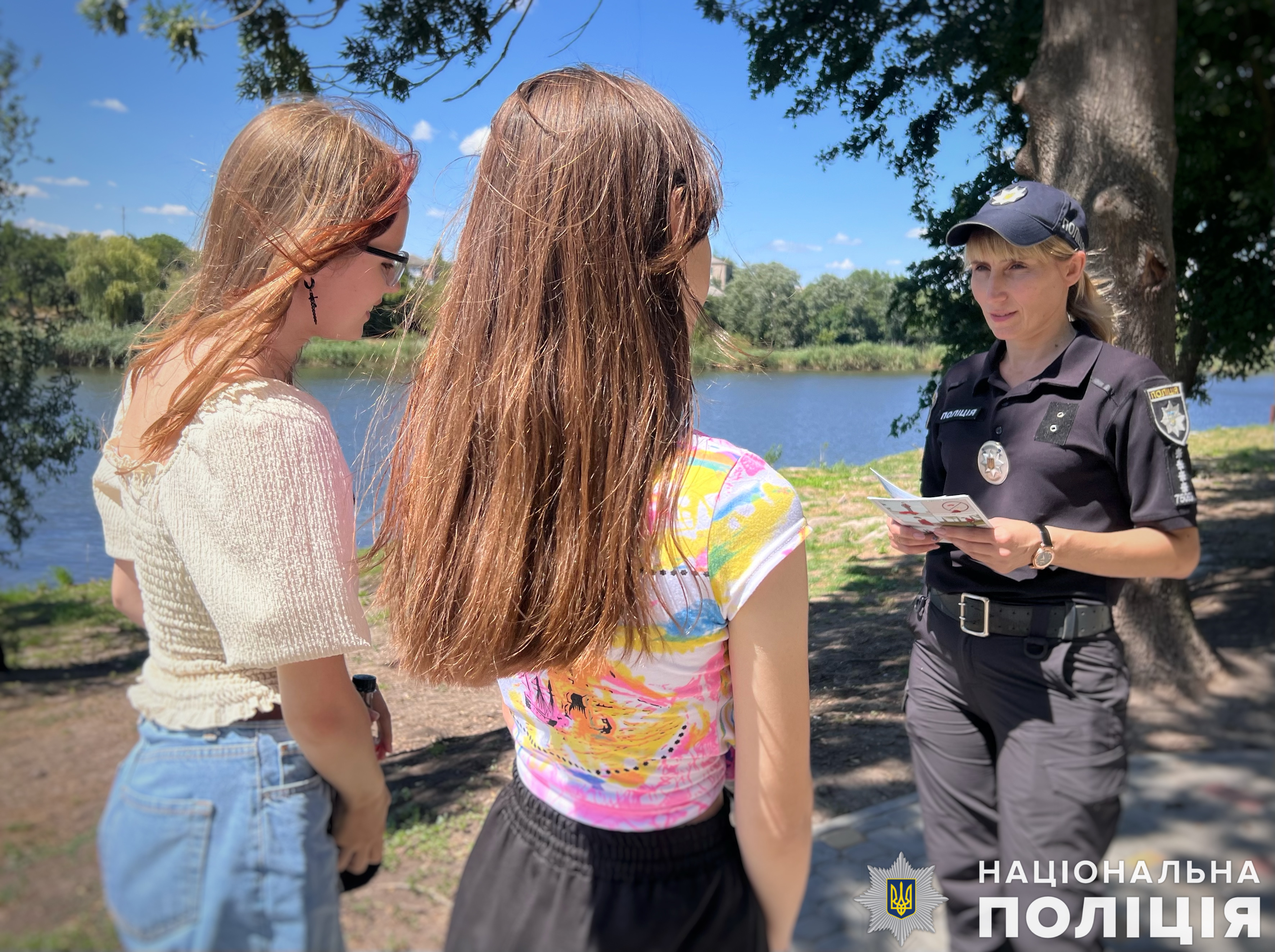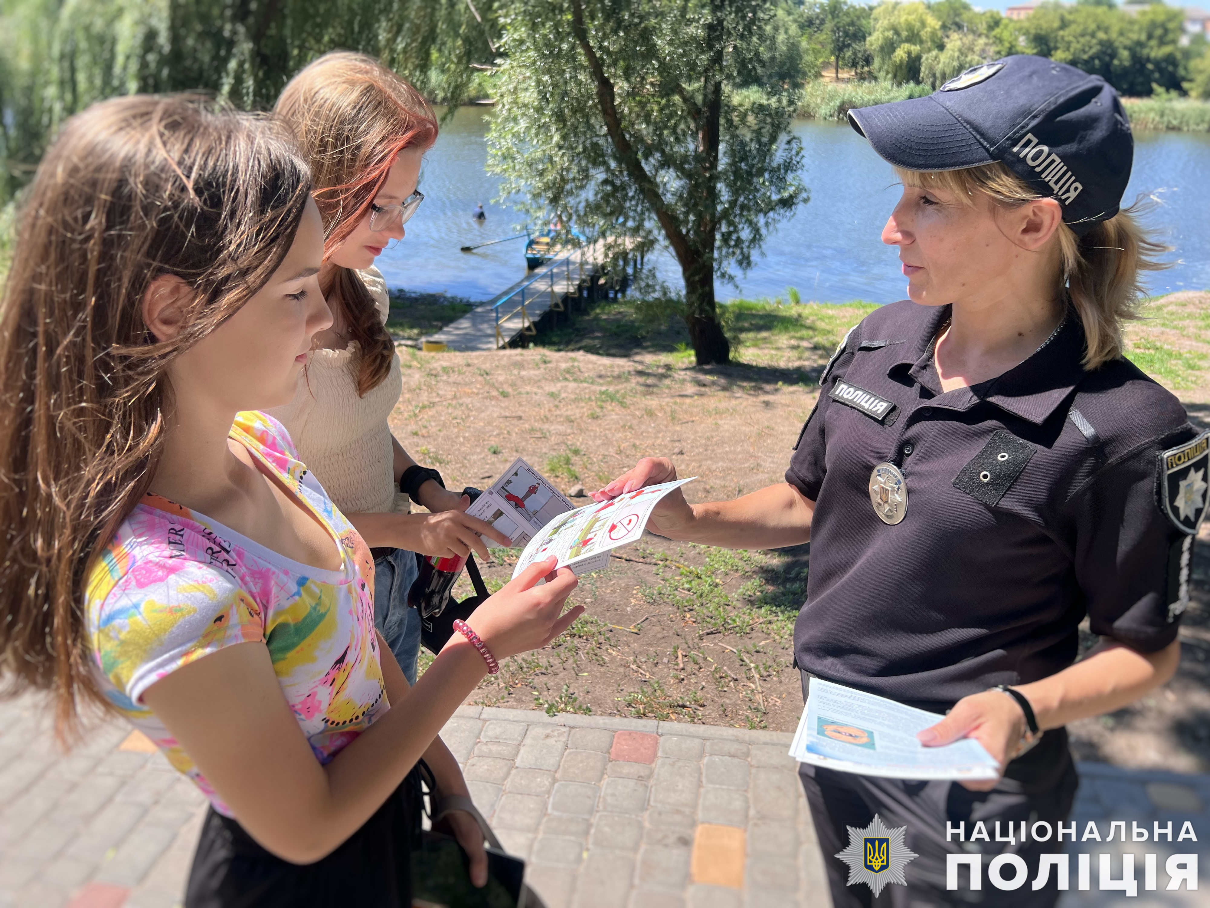 Окремо поліцейська наголосила на правилах поведінки на воді. Зокрема зазначила про заборону стрибати у воду з висоти, зненацька пірнати і хапати когось за руки і ноги, а у разі, якщо малеча ще не вміє плавати – заходити до води необхідно виключно під наглядом дорослих.