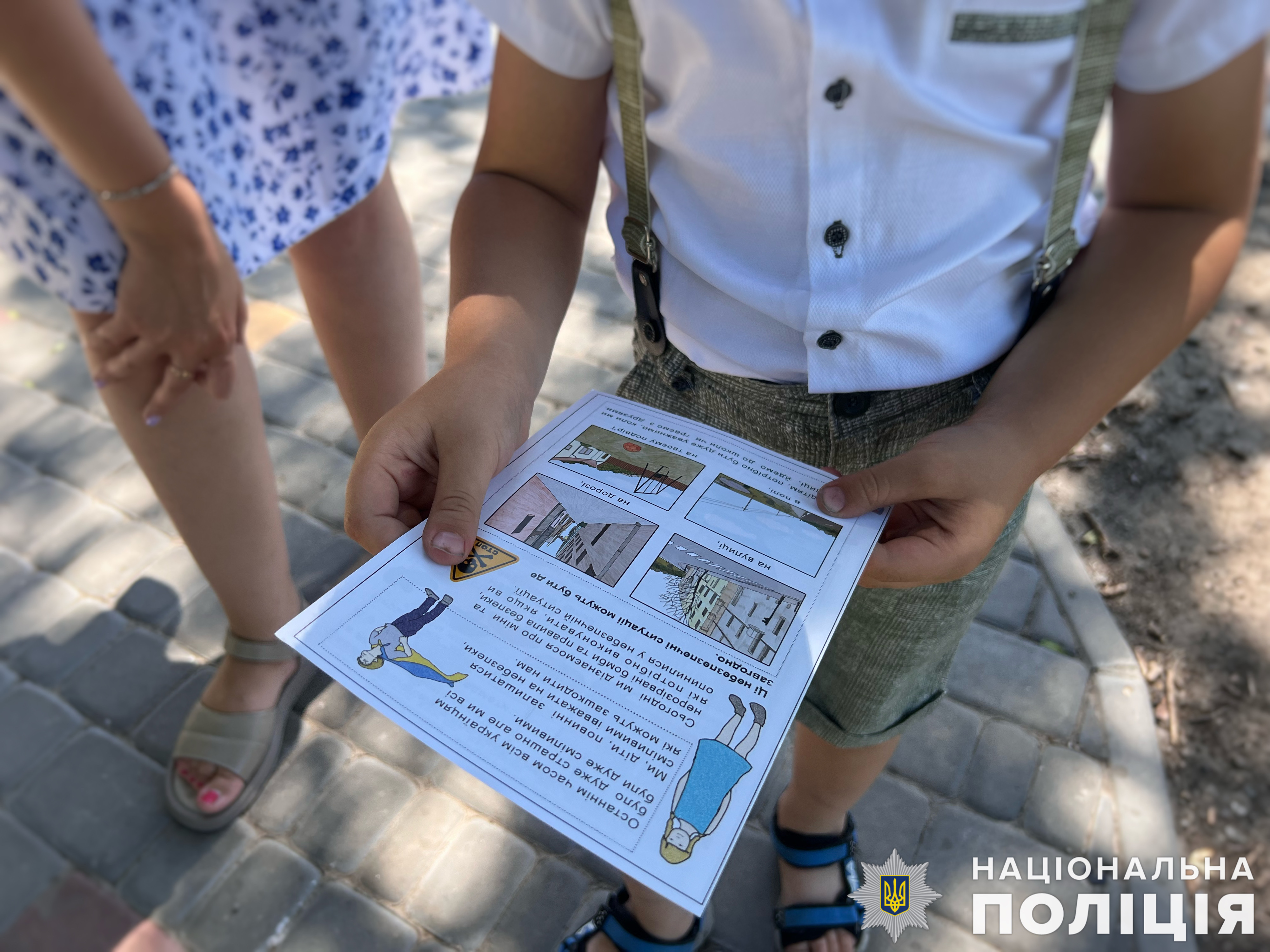 Також ювенальна інспекторка наголосила, що у разі виявлення підозрілого предмета ні в якому разі не можна брати його до рук, не переносити, не кидати в полум'я чи заливати водою. Якщо побачили незнайомий предмет, не підходити, не чіпати, а повідомити дорослих про знахідку або подзвонити 101 або 102.