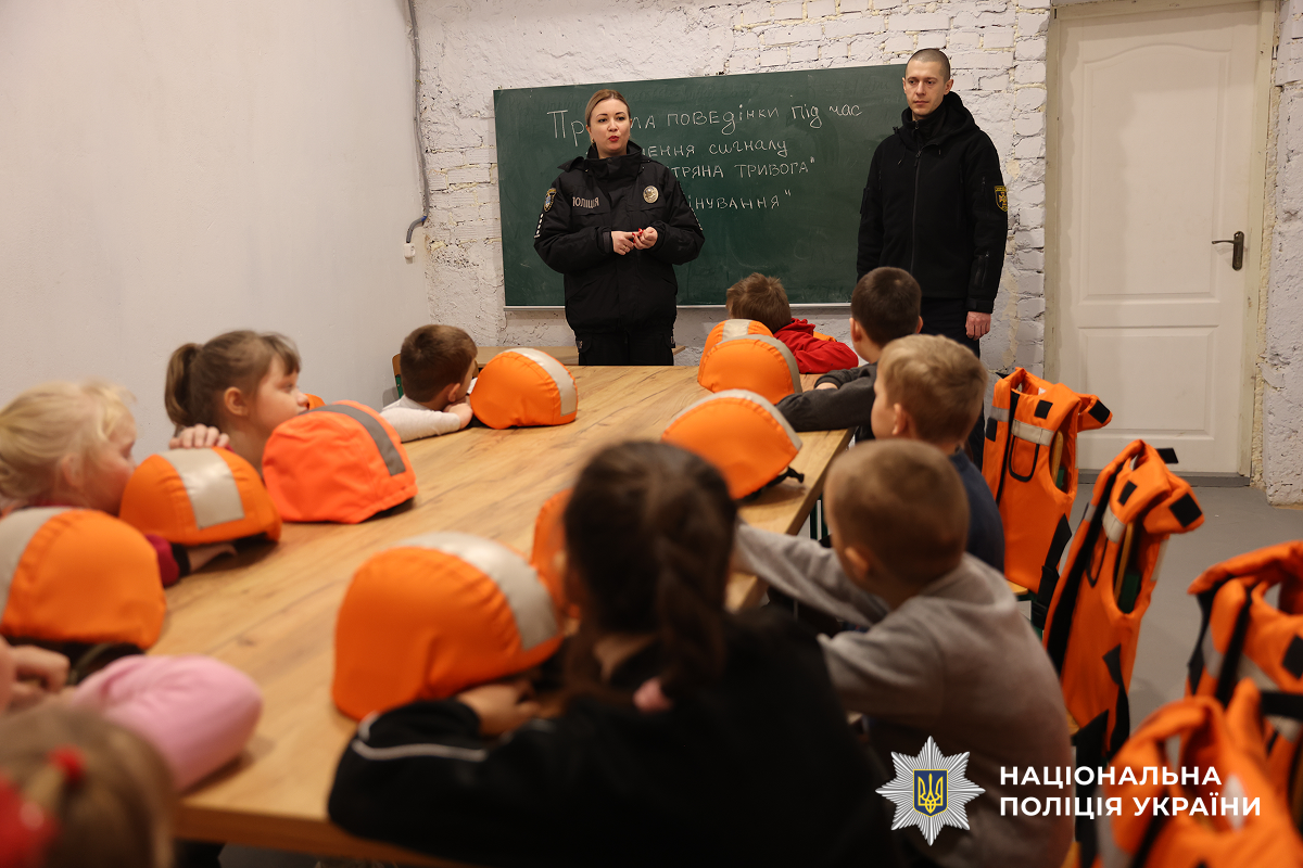 Поліцейська акцентувала увагу дітей на необхідності зберігати спокій, уважно слухати і організовано прямувати до безпечного місця.