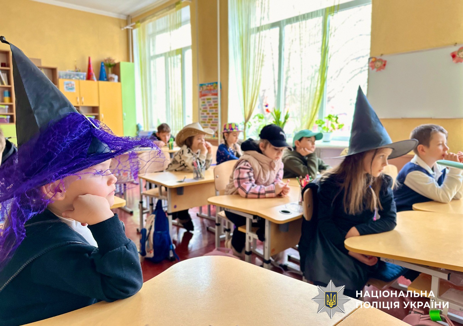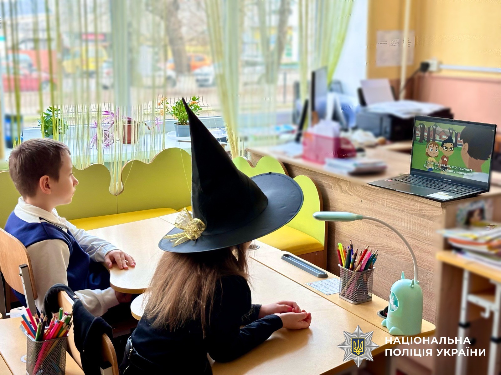 Інспекторка сектору служби освітньої безпеки Первомайського райвідділу поліції Карина Дробко залучила першокласників міської початкової школи до пізнавального інтерактиву у форматі казки про пригоди хлопчика-неслуха, який потрапляв у різні небезпечні ситуації із незнайомцями.