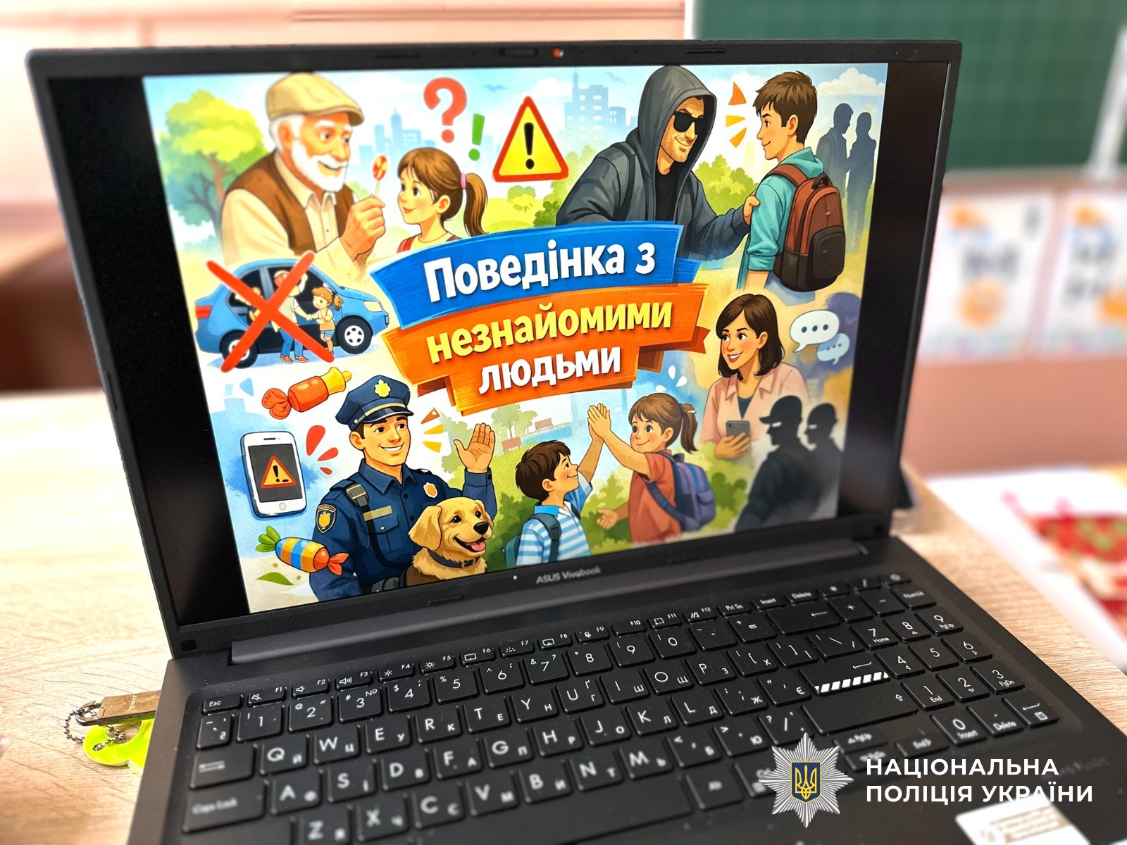 На завершення інспекторка закликала дітей завжди бути обережними та розсудливими, підозріло ставитись до незнайомих людей та їхніх пропозицій. Якщо ж незнайомці занадто наполегливо цікавляться вашим життям — необхідно одразу повідомити про це батьків, вчителів чи зателефонувати до поліції за номером 102.