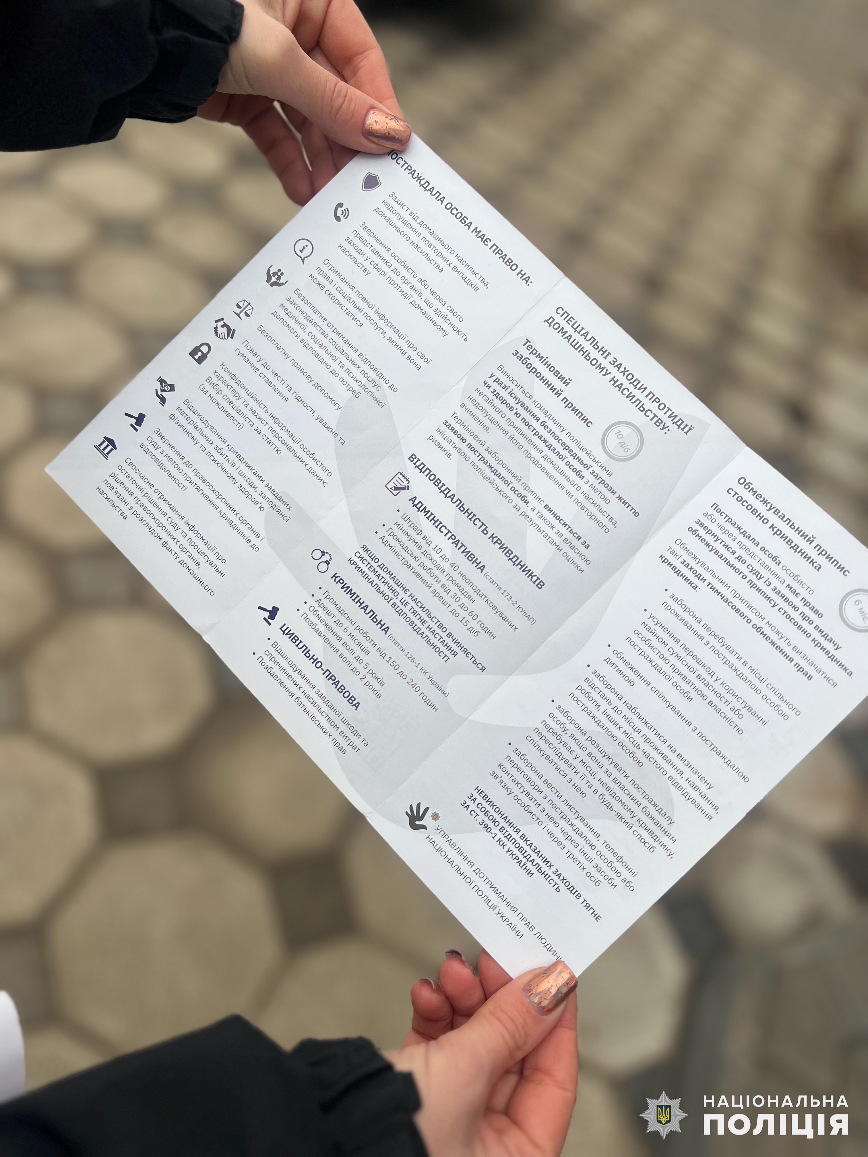 У найбільш відвідуваних громадських місцях правоохоронці розмістили інформаційні плакати з алгоритмом дій у разі вчинення домашнього насилля, нагадали громадянам їхні права та до яких органів можна звернутись по допомогу для захисту від знущань: