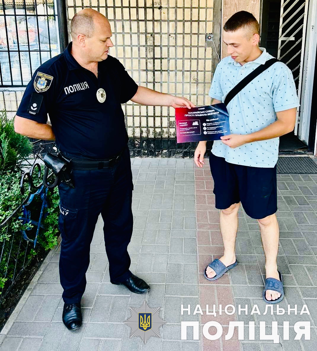 Спілкуючись із населенням, поліцейські роздавали їм інформаційні листівки та буклети, в яких містяться правила, які допоможуть вберегти свої заощадження від аферистів. А у громадських місцях - магазинах, аптеках, місцевих органах влади розміщували плакати і постери із алгоритмом дій, які допоможуть розпізнати шахрая та не потрапити на його гачок.