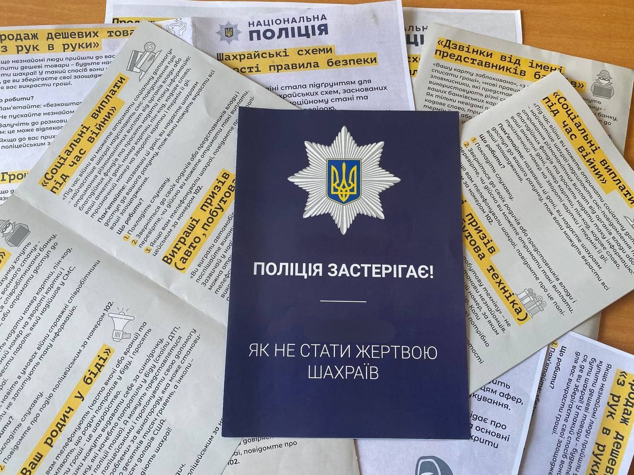 Для кращої обізнаності людей, правоохоронець роздавав попереджувальні листівки та буклети з описом шахрайських схем та порадами як уберегтися від зловмисників.