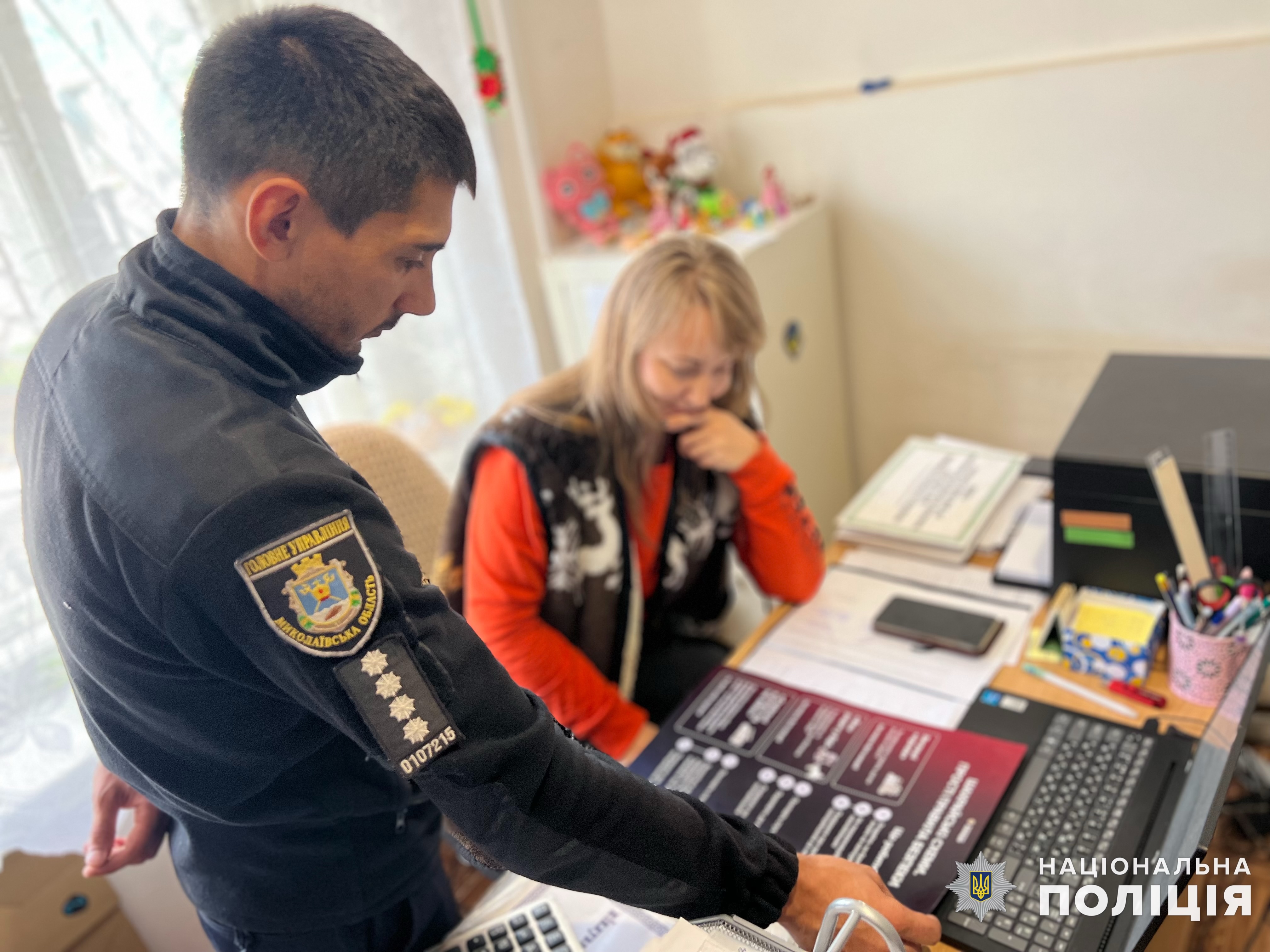 Під час спілкування з жителями Снігурівки поліцейські роздавали профілактичні листівки, у яких вказані найпоширеніші шахрайські схеми та способи їх уникнення.