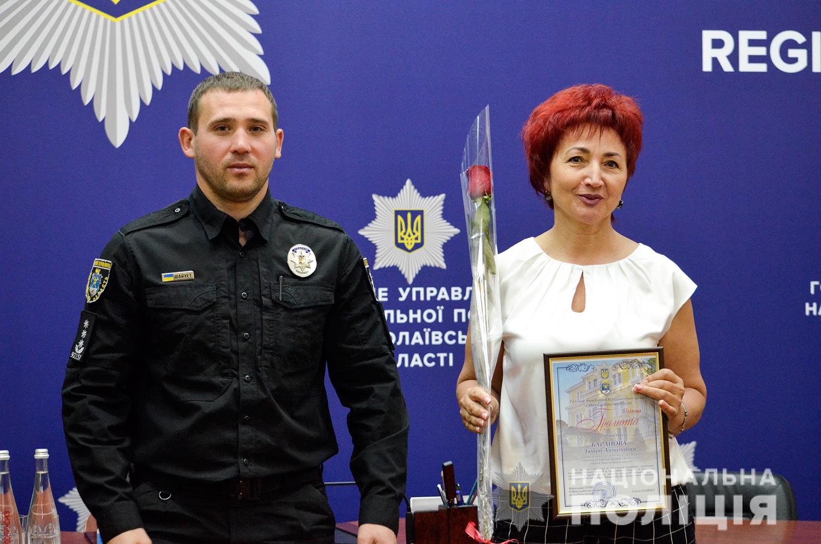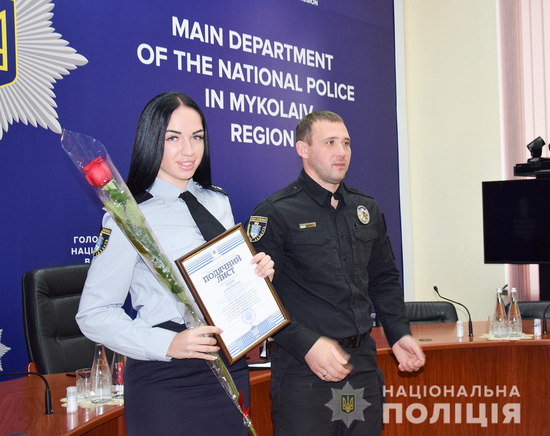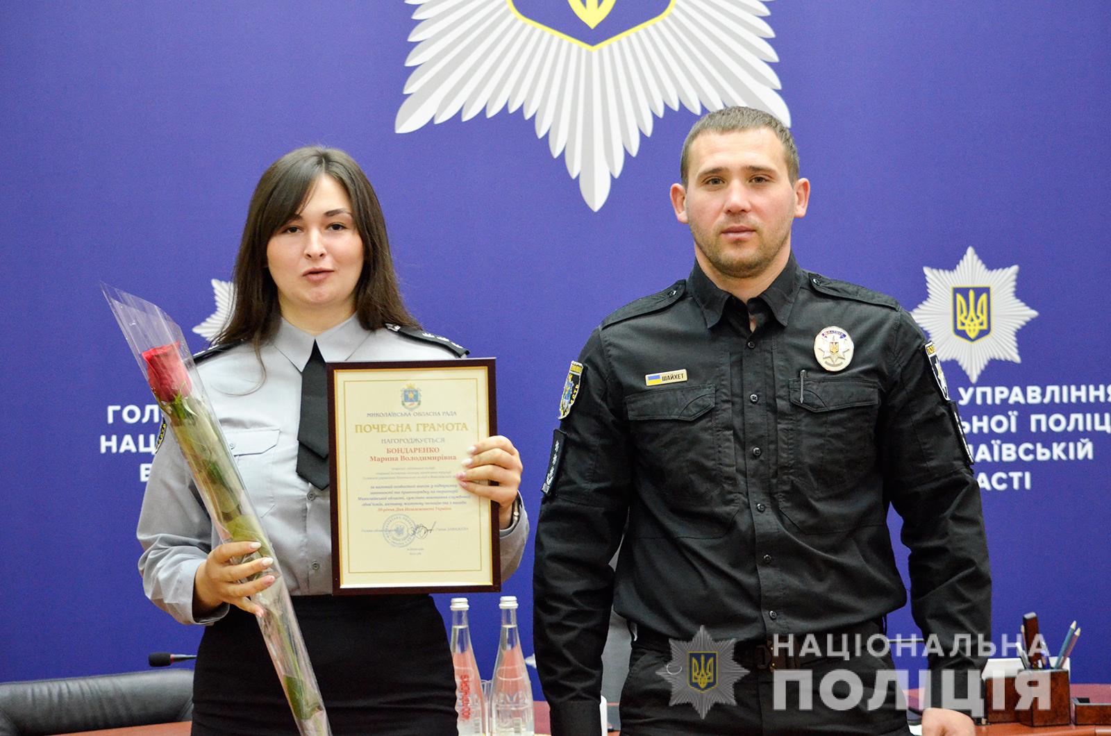 За зразкове виконання службових обов’язків, високий професіоналізм, відповідальність та дисципліну, наполегливість і самовіддану службу кращі правоохоронці отримали заохочувальні відзнаки Міністерства внутрішніх справ, Національної поліції України, подяки та почесні грамоти Головного управління Національної поліції, Миколаївської обласної державної адміністрації та Миколаївської міської ради.