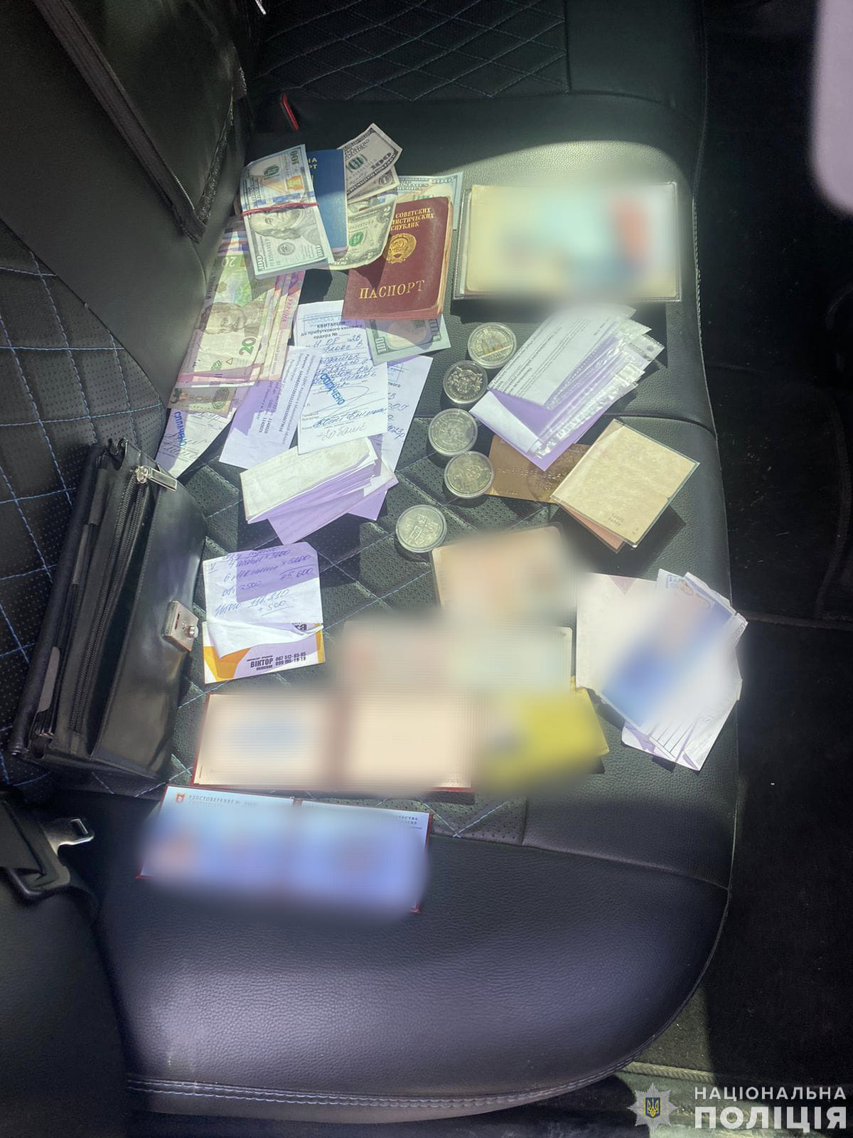 У зловмисника поліцейські вилучили понад 4000 доларів США, 3000 гривень, мобільні телефони та автомобіль.