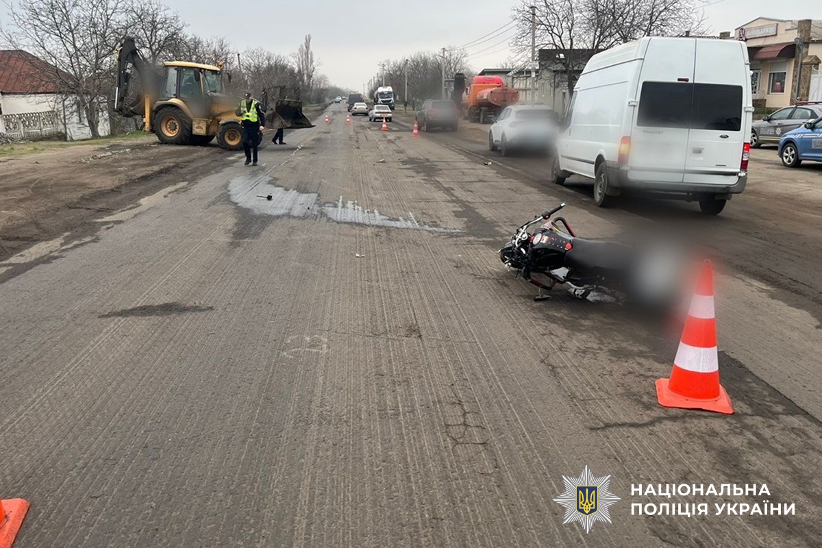 Вчора, 1 квітня, близько 12:10 у селі Новогригорівка Вознесенського району сталась дорожньо-транспортна пригода за участю екскаватора-навантажувача Volvo BL71B, за кермом якого перебував 43-річний чоловік, який виконував дорожні роботи, та мотоцикла Rorye 200 R, під керуванням 24-річного водія.