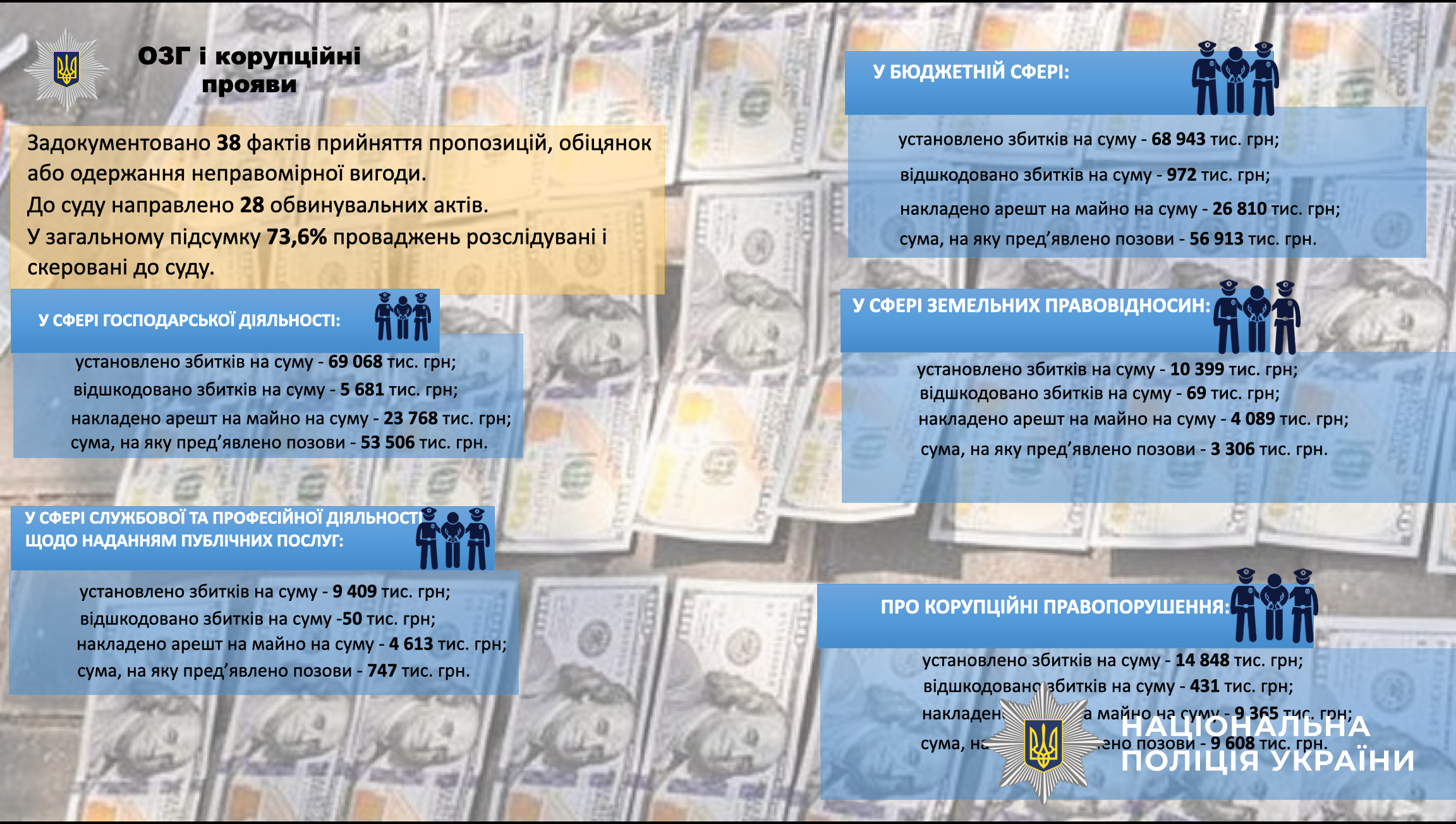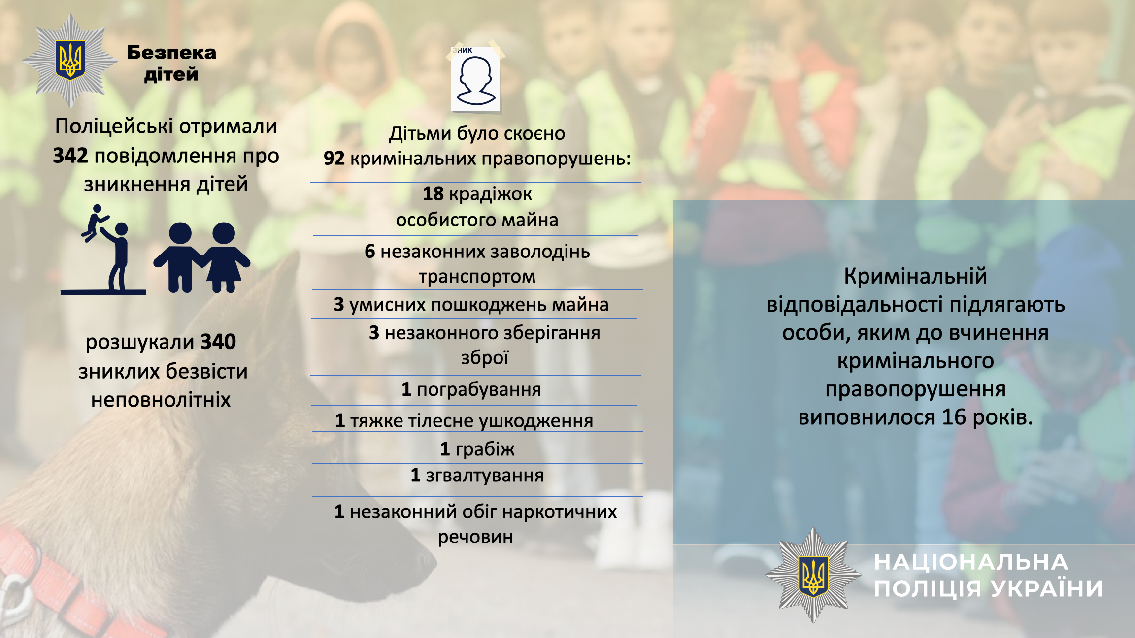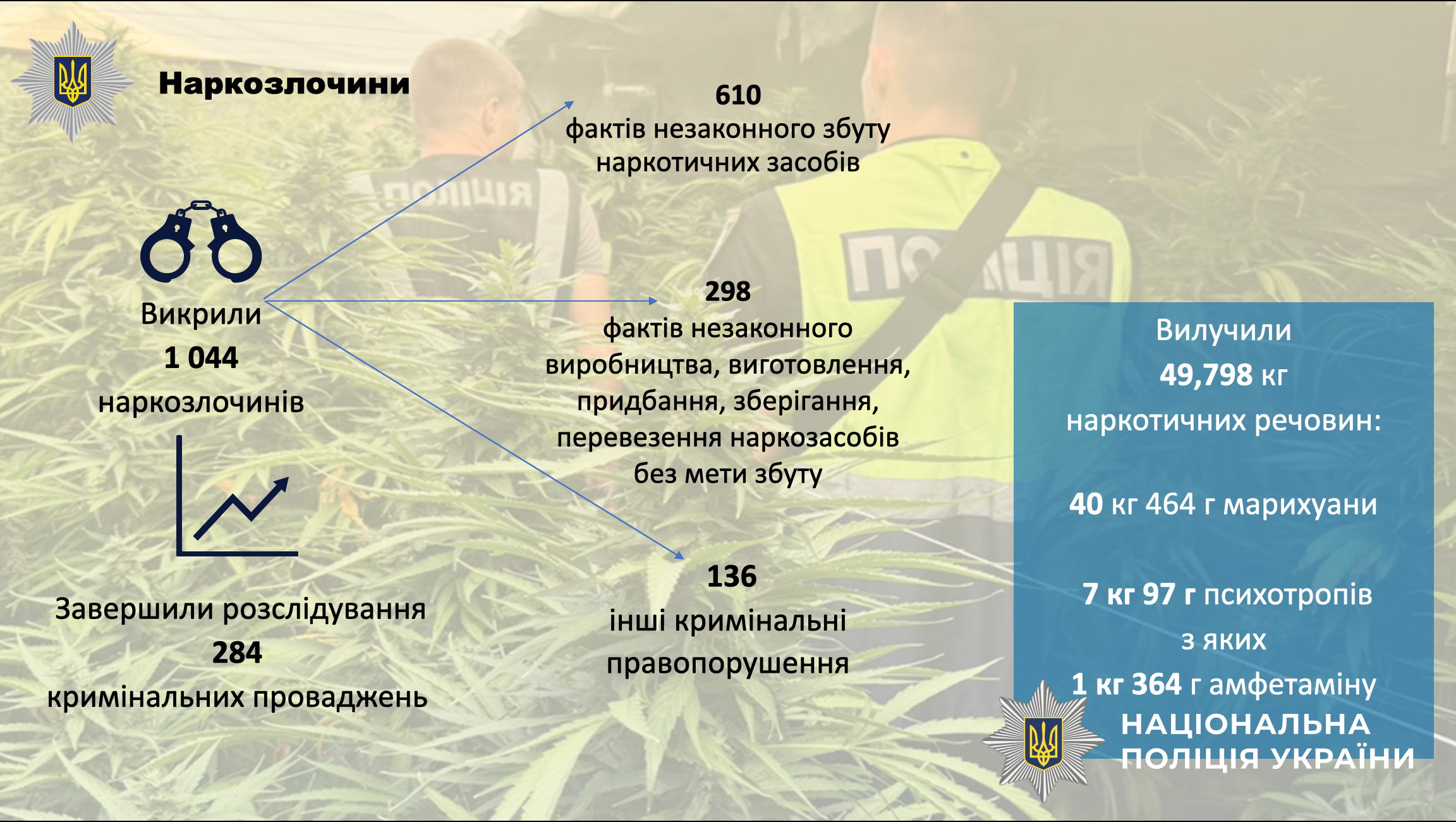 🔹Підрозділи слідства та дізнання внесли до Єдиного реєстру досудових розслідувань інформацію про вчинення 8 537 кримінальних правопорушень. Також викрили 1 916 осіб, які вчинили злочини.