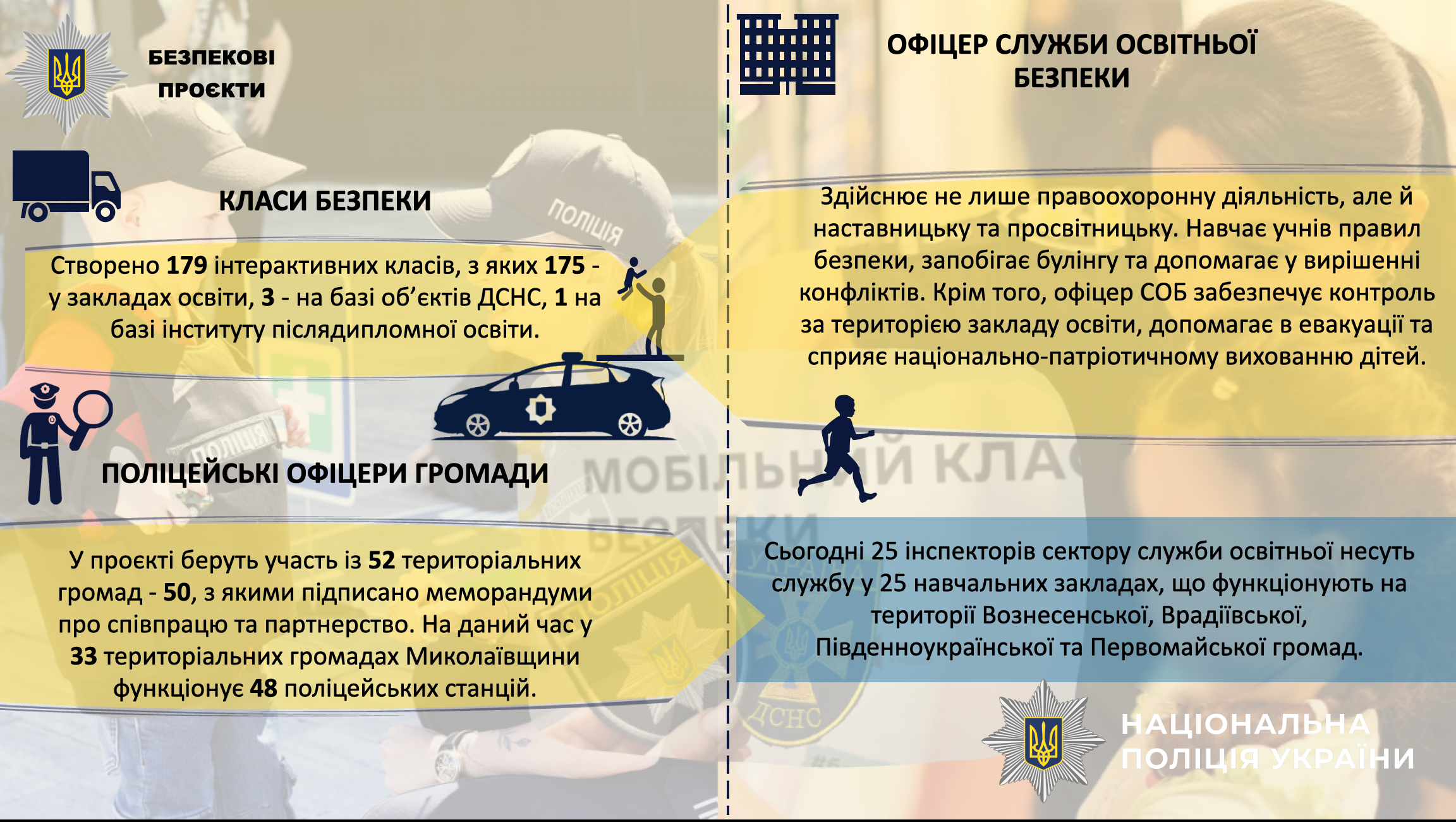 🔹Триває спільна робота з представниками влади щодо подальшого втілення безпекових ініціатив - «Поліцейський офіцер громади», «Служба освітньої безпеки» та розвиток і розширення системи відеоспостереження «Безпечне місто».