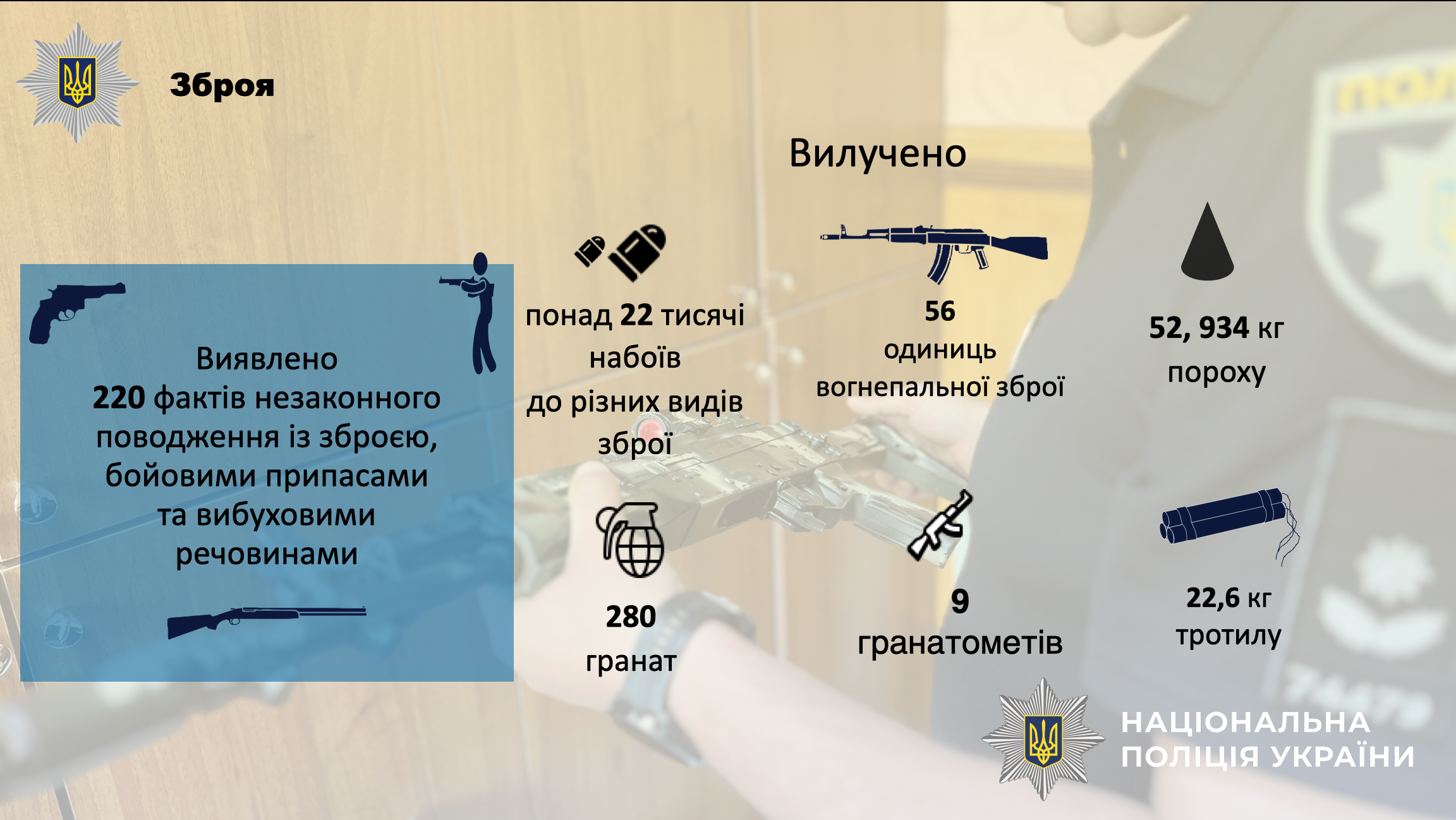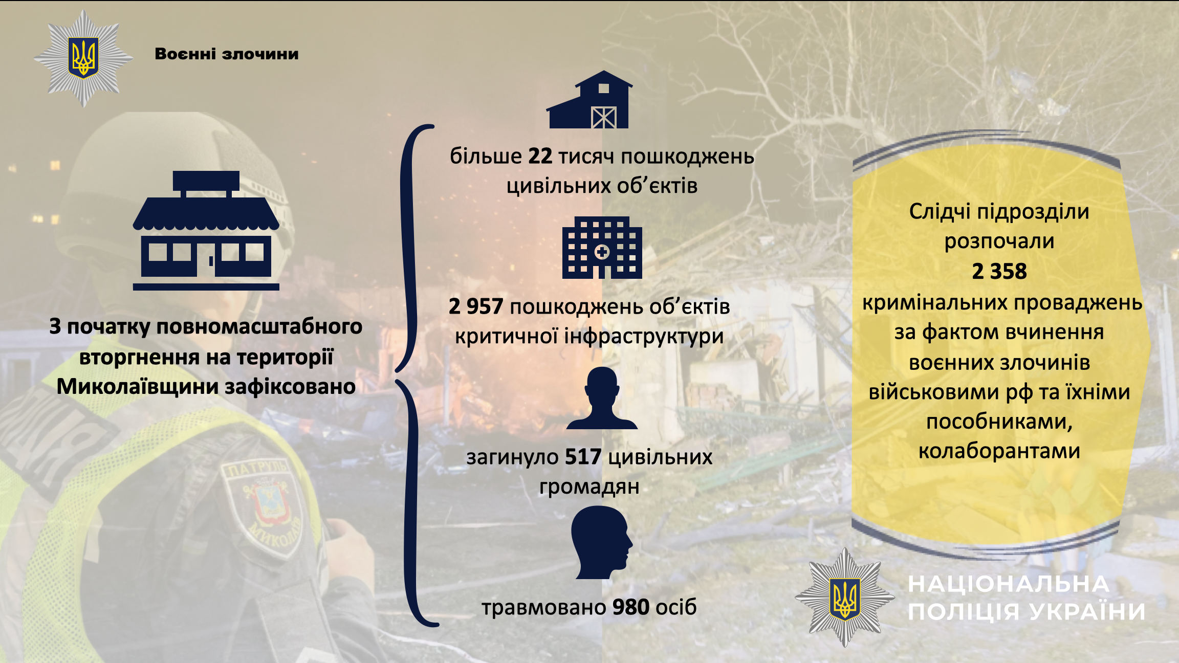 🔹Пріоритети залишаються незмінними: безпека громадян, документування воєнних злочинів, протидія злочинності, боротьба з незаконним обігом зброї та наркотичних засобів.