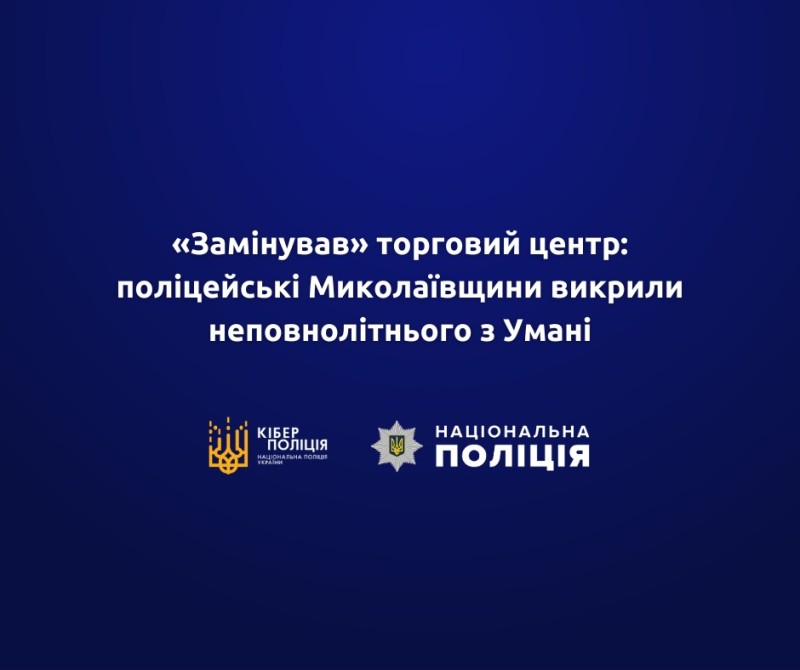 Кіберполіцейські Миколаївщини спільно зі слідчими МРУП та оперативниками карного розшуку ГУНП в Миколаївській області та працівниками обласного Управління СБУ встановили особу неповнолітнього мешканця міста Умань Черкаської області, який надіслав електронного листа з погрозами влаштувати вибух в одному з торгових центрів Миколаєва.