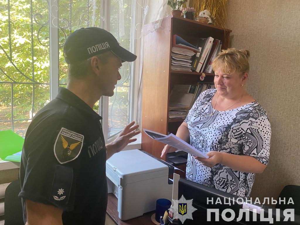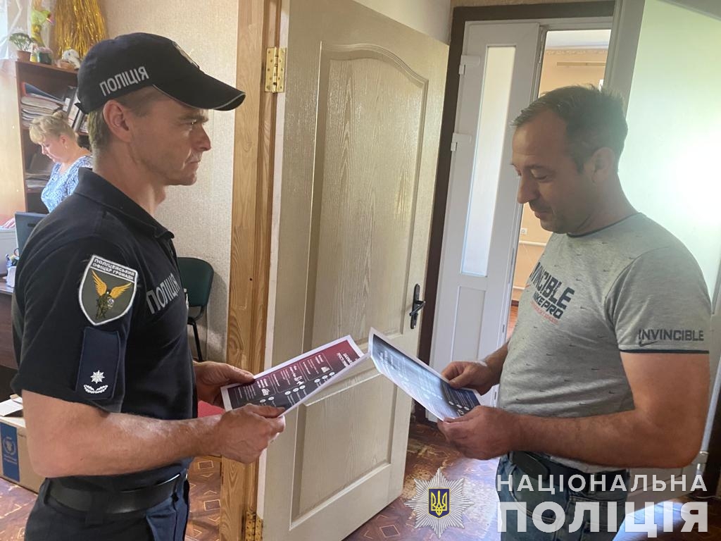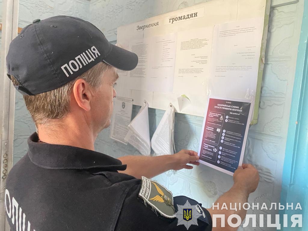 Під час спілкування правоохоронець залишав громадянам попереджувальні листівки та буклети, в яких міститься опис різних шахрайських схем та поради поліції як захиститися від протиправних зазіхань зловмисників.
