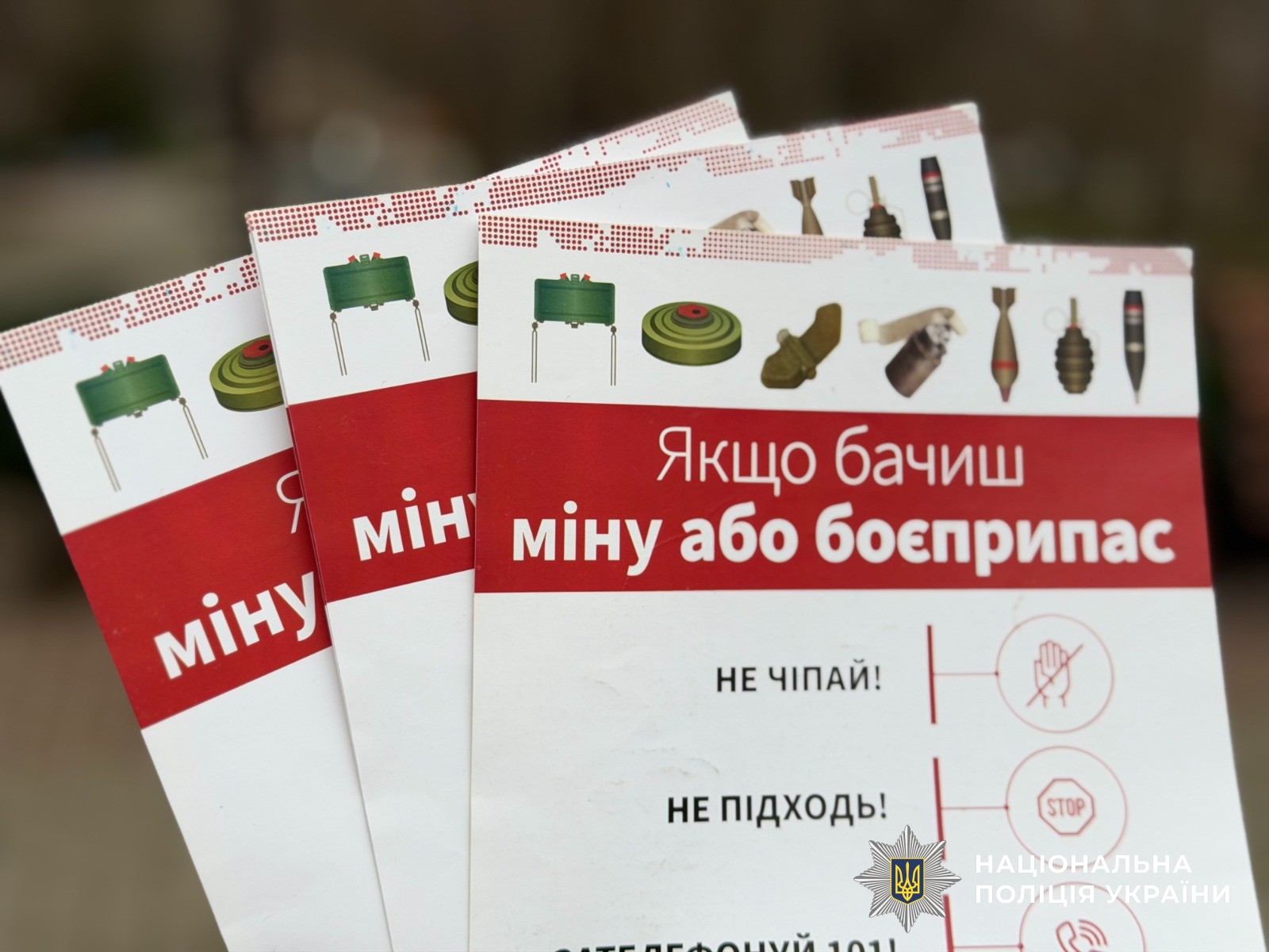 Правоохоронець роз’яснював місцевим жителям як розпізнати вибухонебезпечні предмети та детально пояснював, як правильно діяти у разі їх виявлення. Наголосив, що заборонено контактувати з такими знахідками і необхідно негайно повідомити фахівців профільних служб.