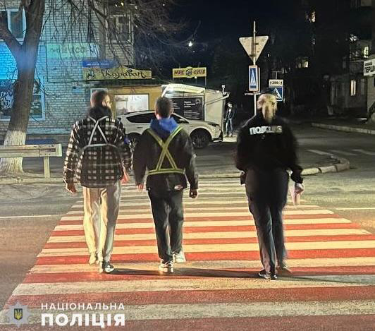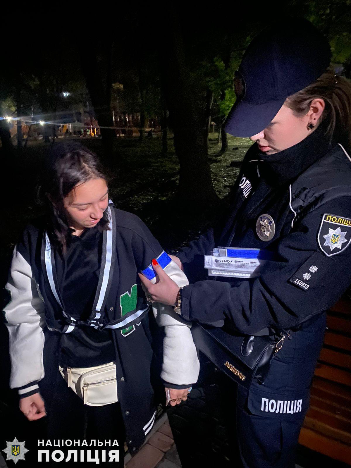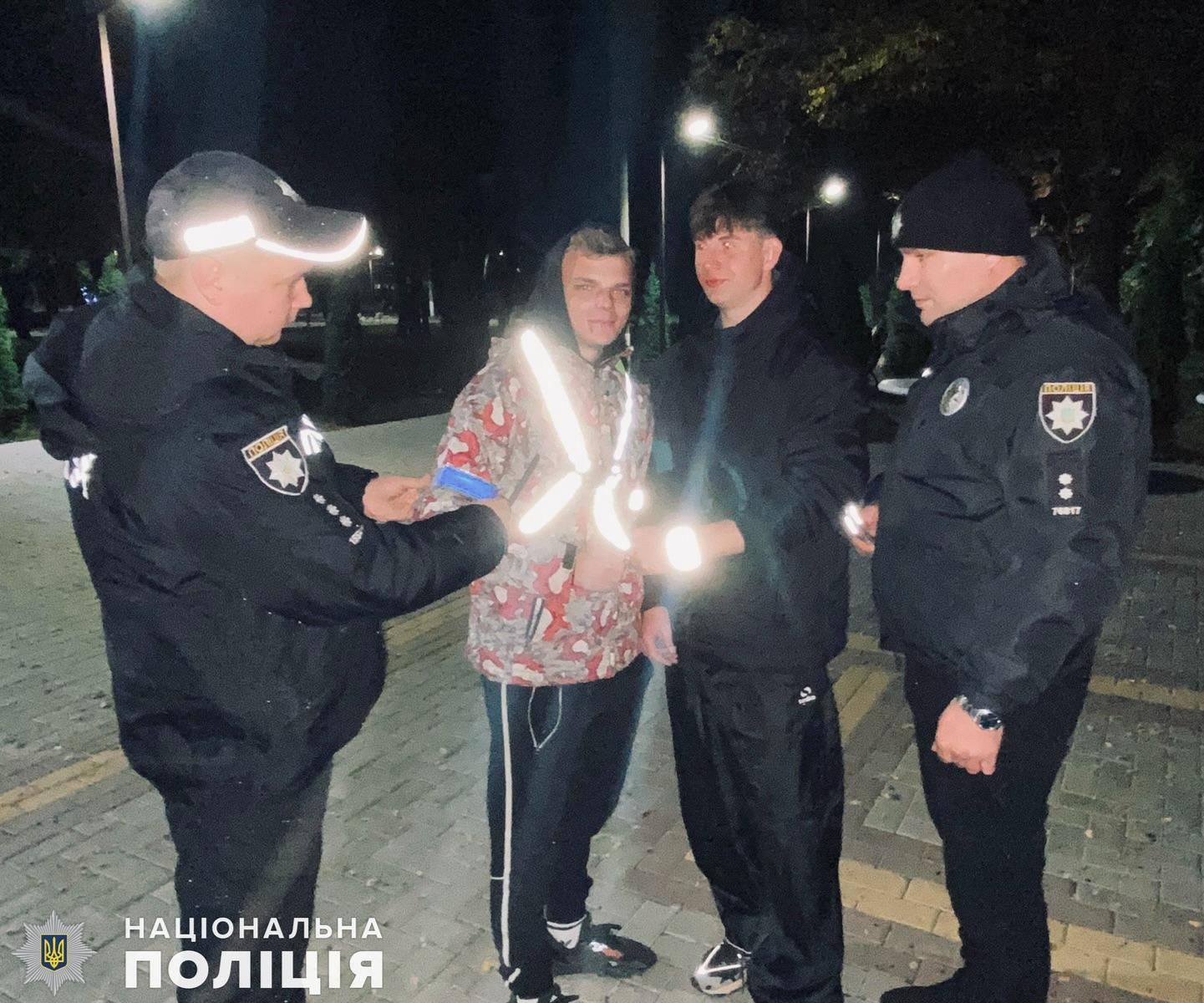 Засвітись у темряві: у Первомайську ювенали поліції роздавали світловідбиваючі флікери неповнолітнім