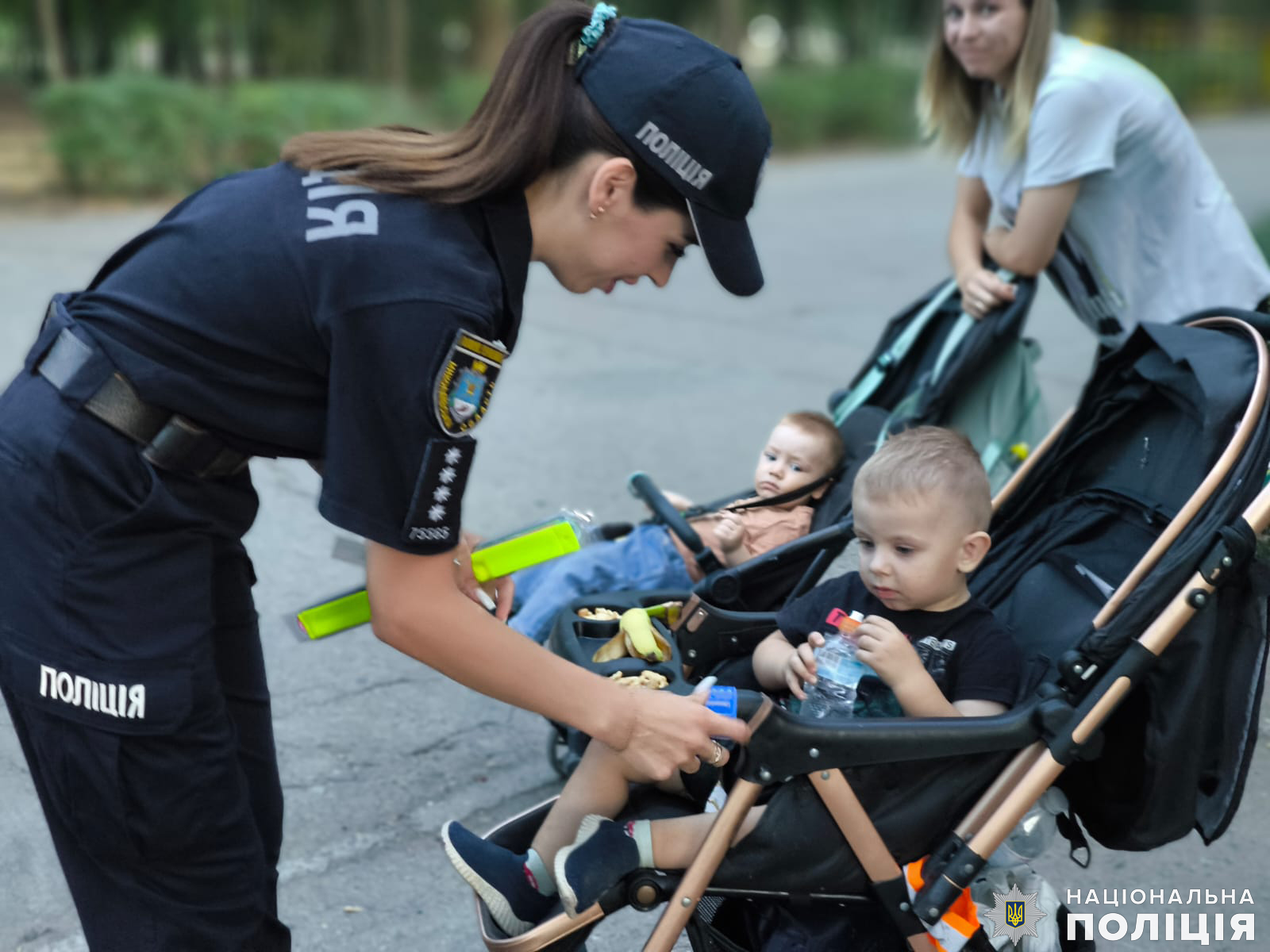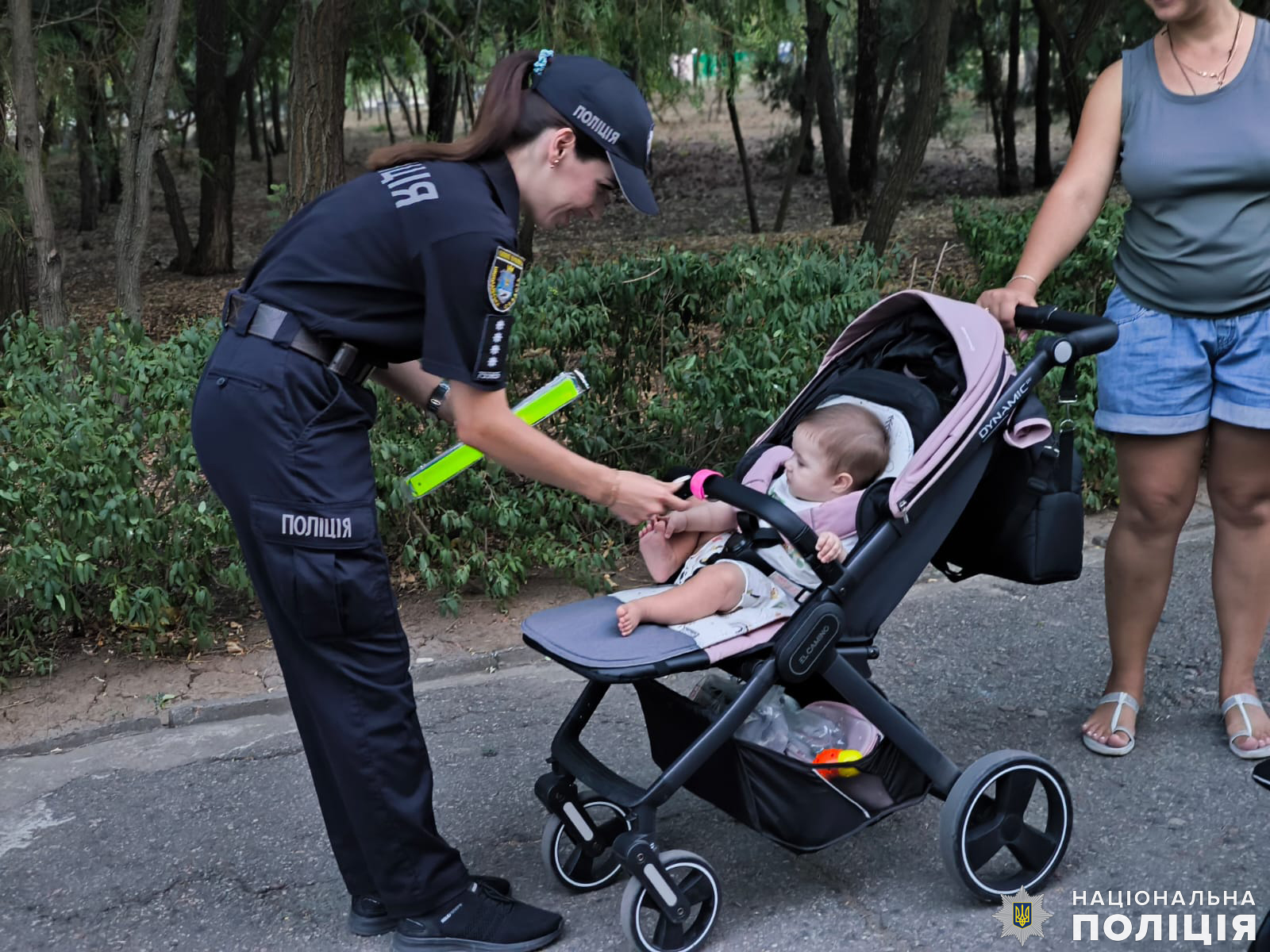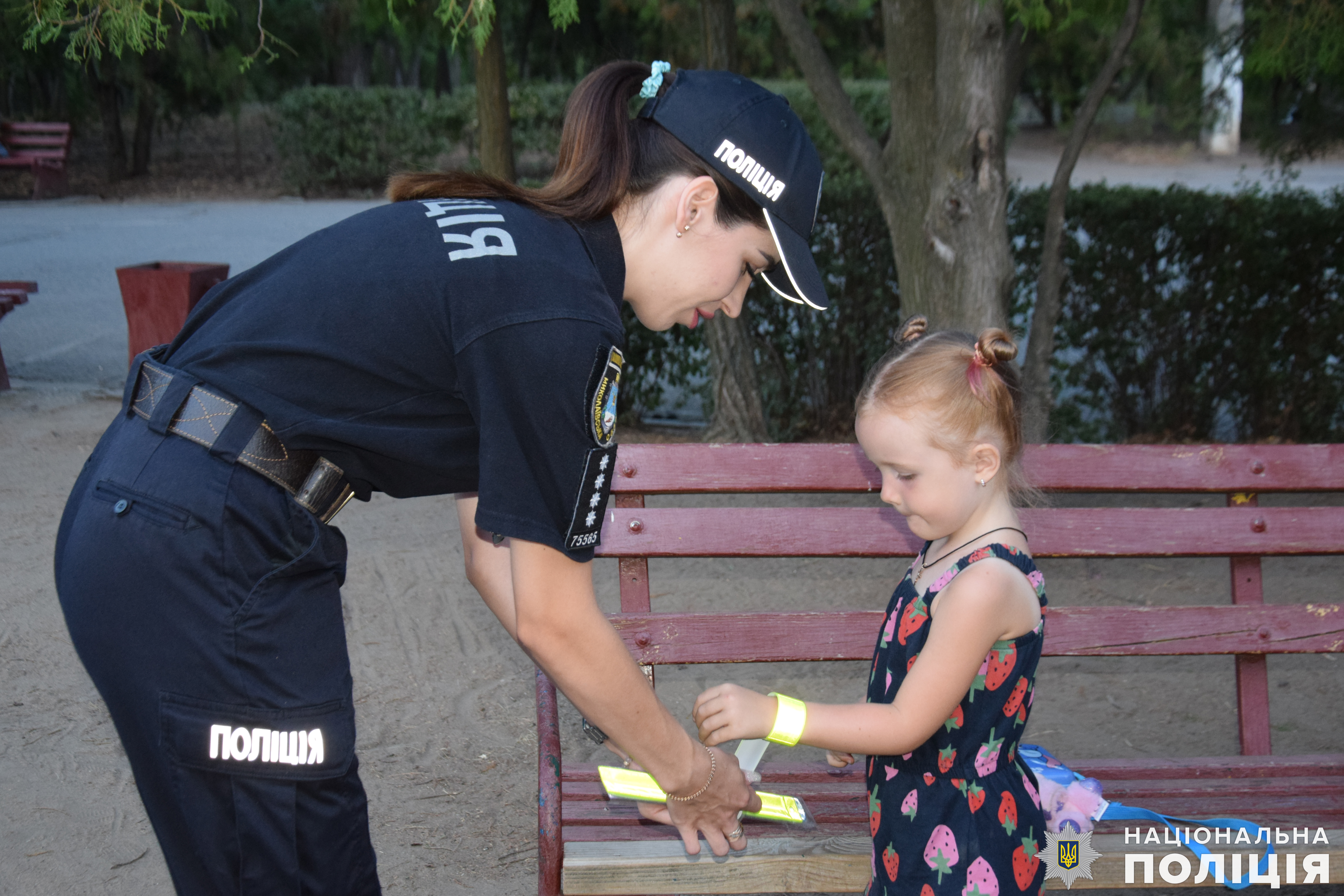 «Засвітись у темряві»: в Миколаєві ювенальна поліцейська, дарувавши флікери, закликала бути помітними