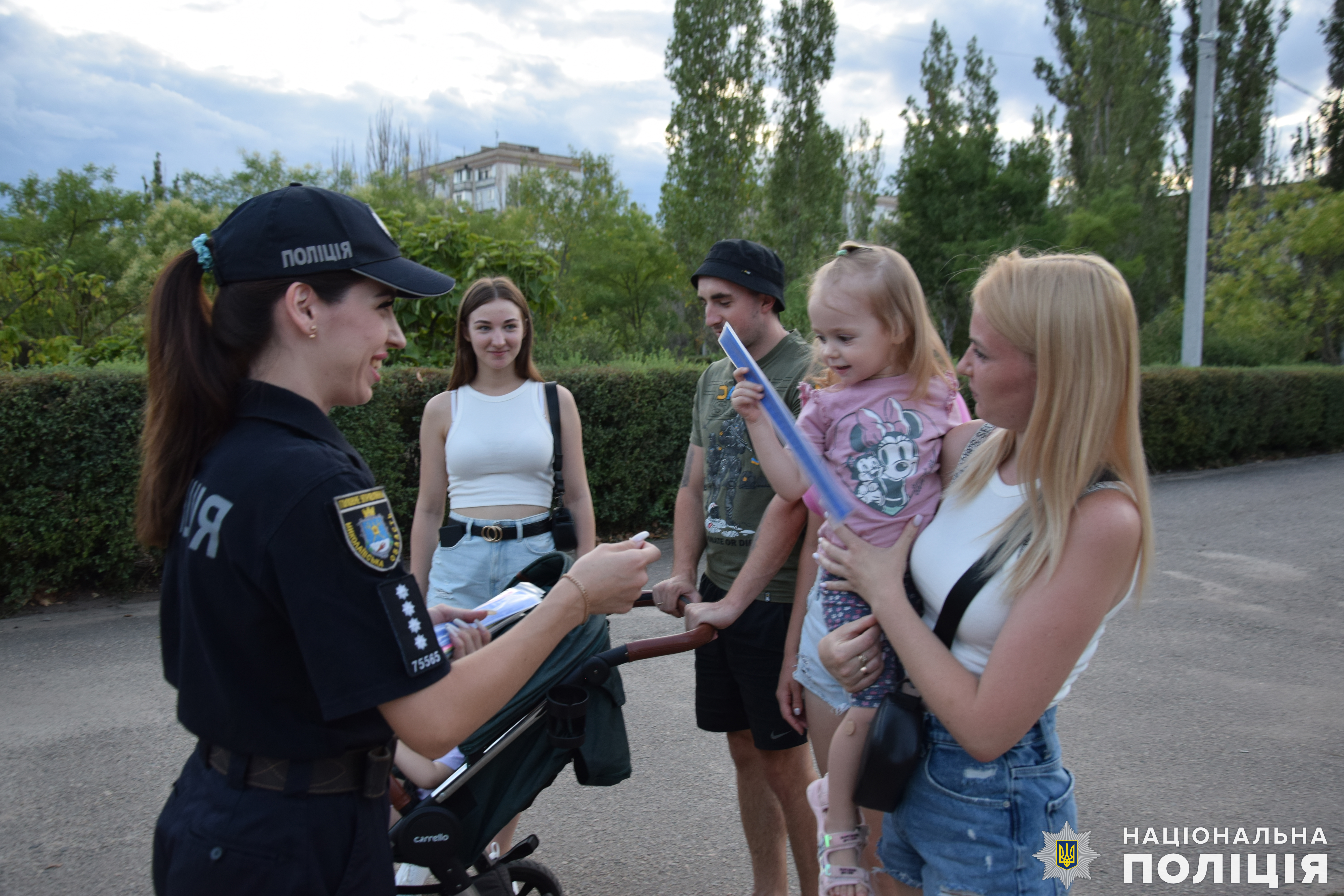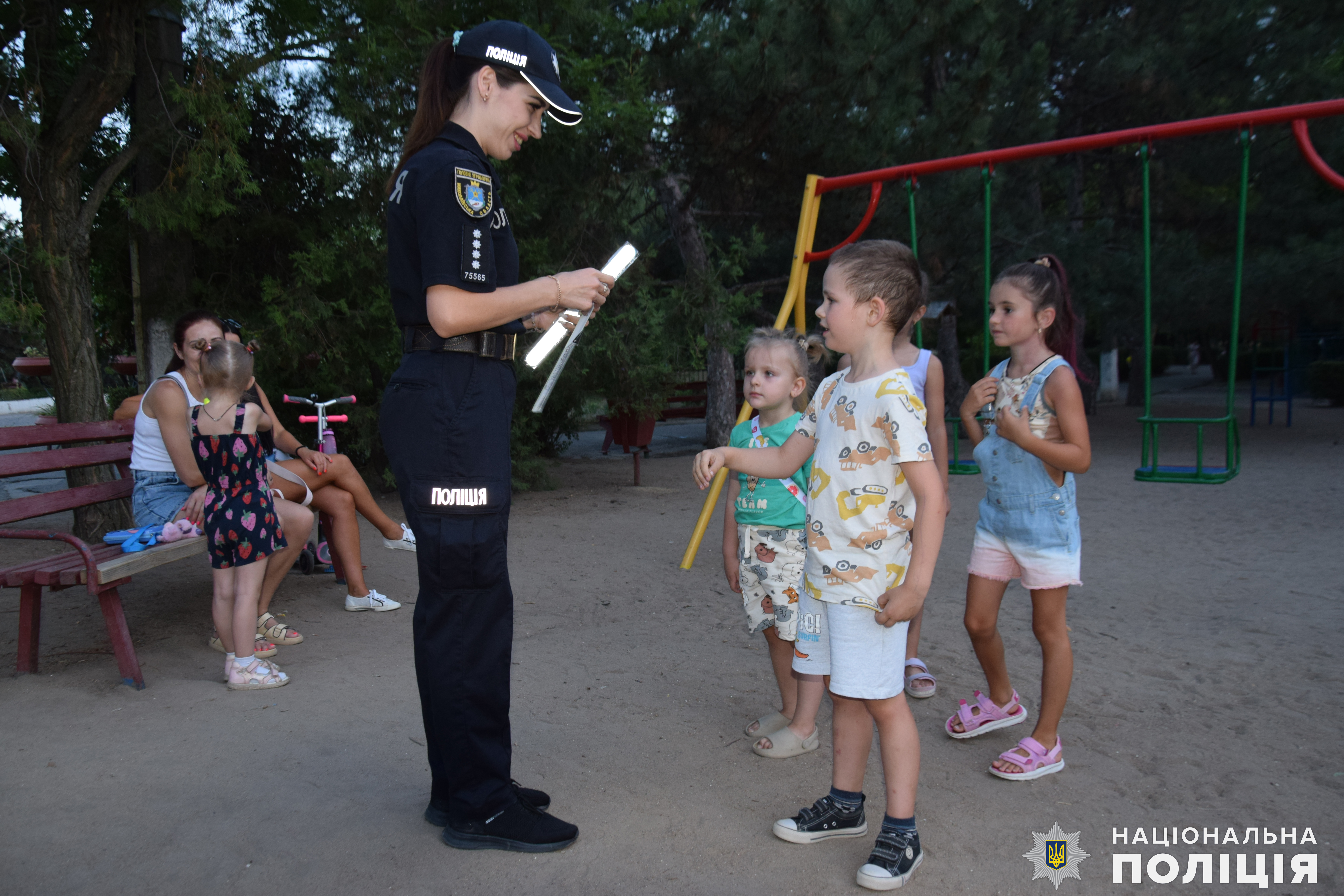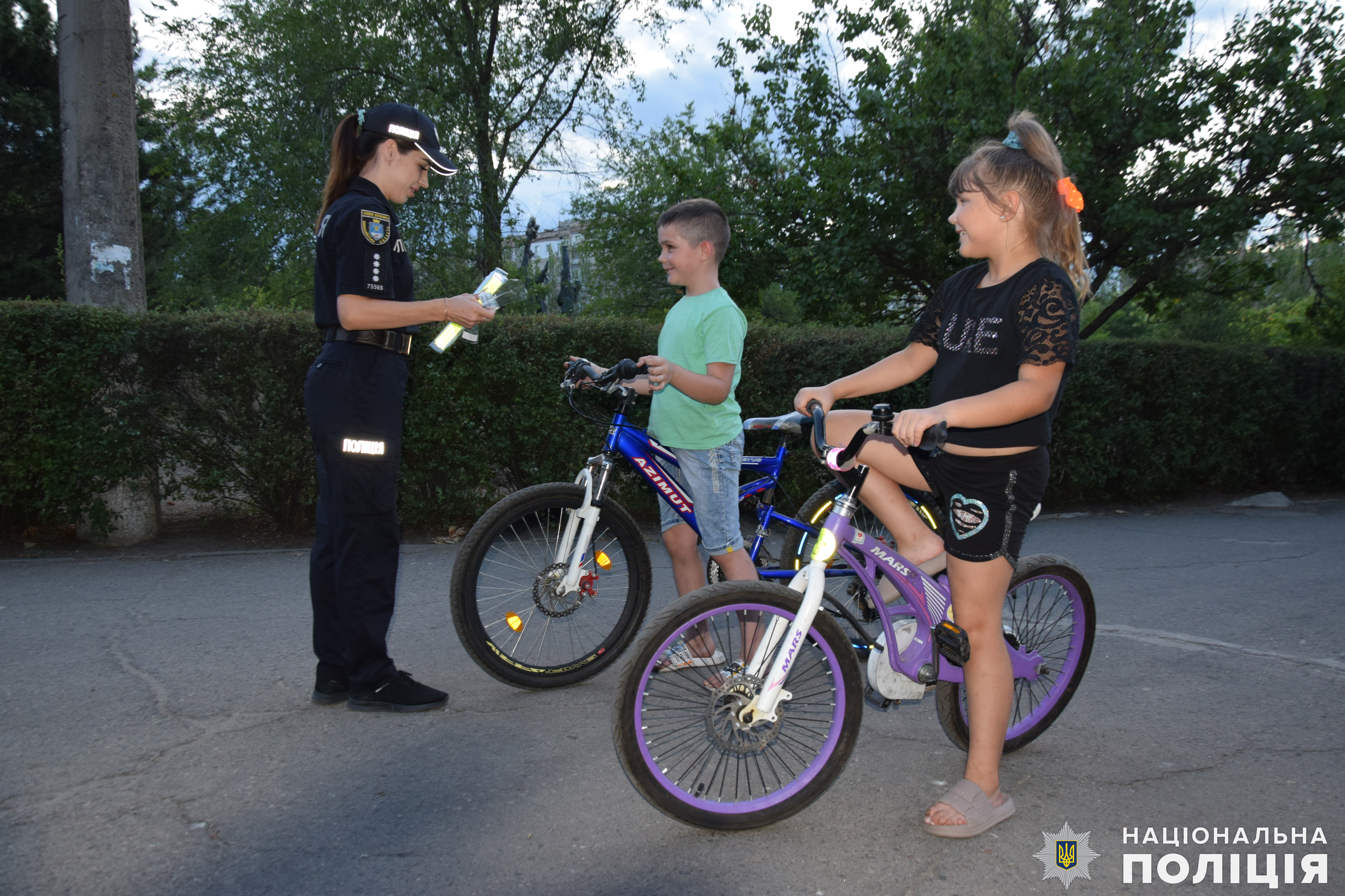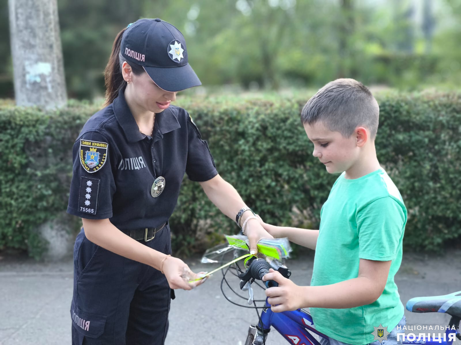 «Засвітись у темряві»: в Миколаєві ювенальна поліцейська, дарувавши флікери, закликала бути помітними