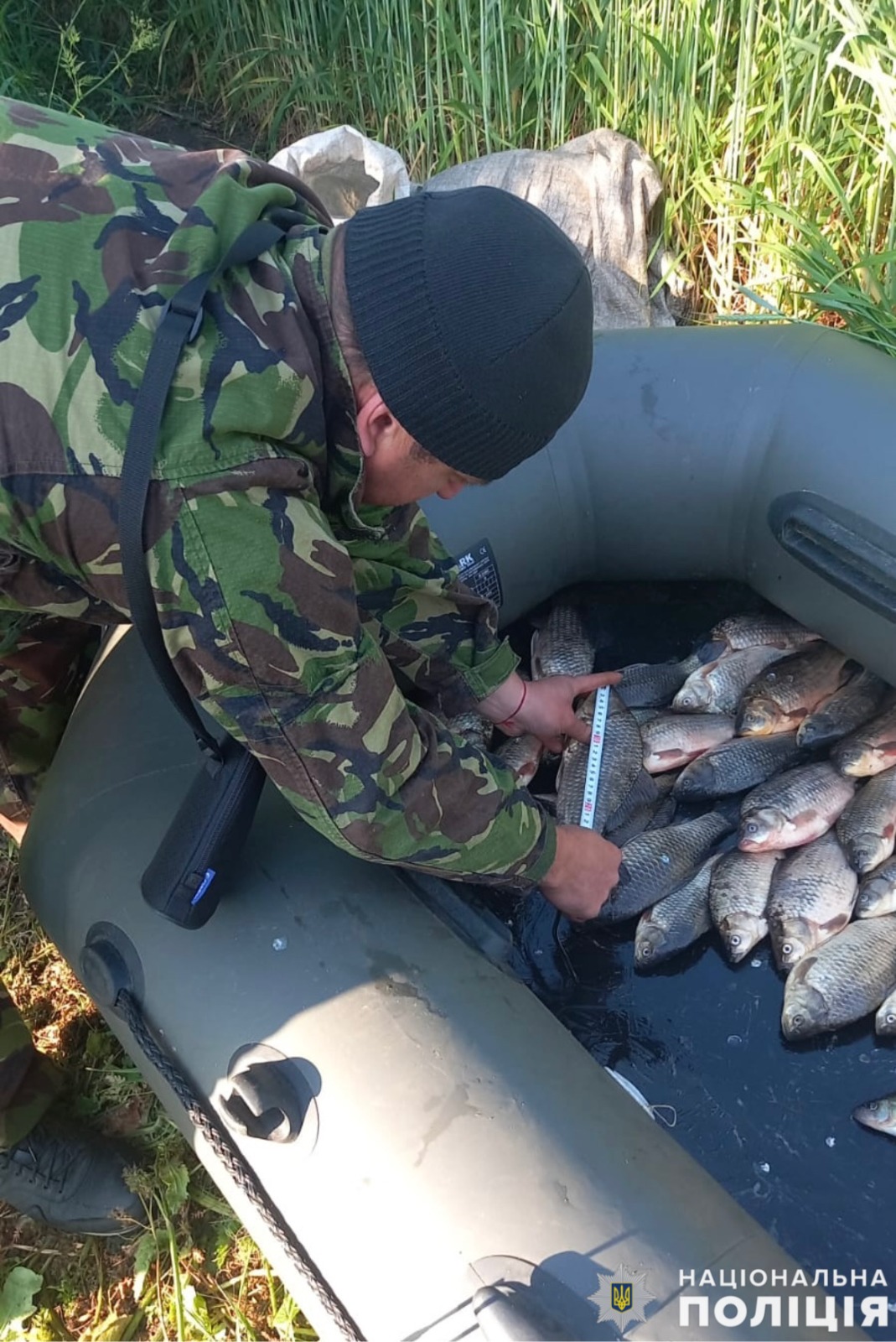 Сьогодні, 25 травня, під час нічного рейду річки Малий Ташлик в селі Лукашівка Первомайського району поліцейський офіцер Синюхинобрідської громади разом із представниками рибоохоронного патруля викрили 69-річного чоловіка, який на надувному човні за допомогою сіток здійснив незаконний вилов риби.