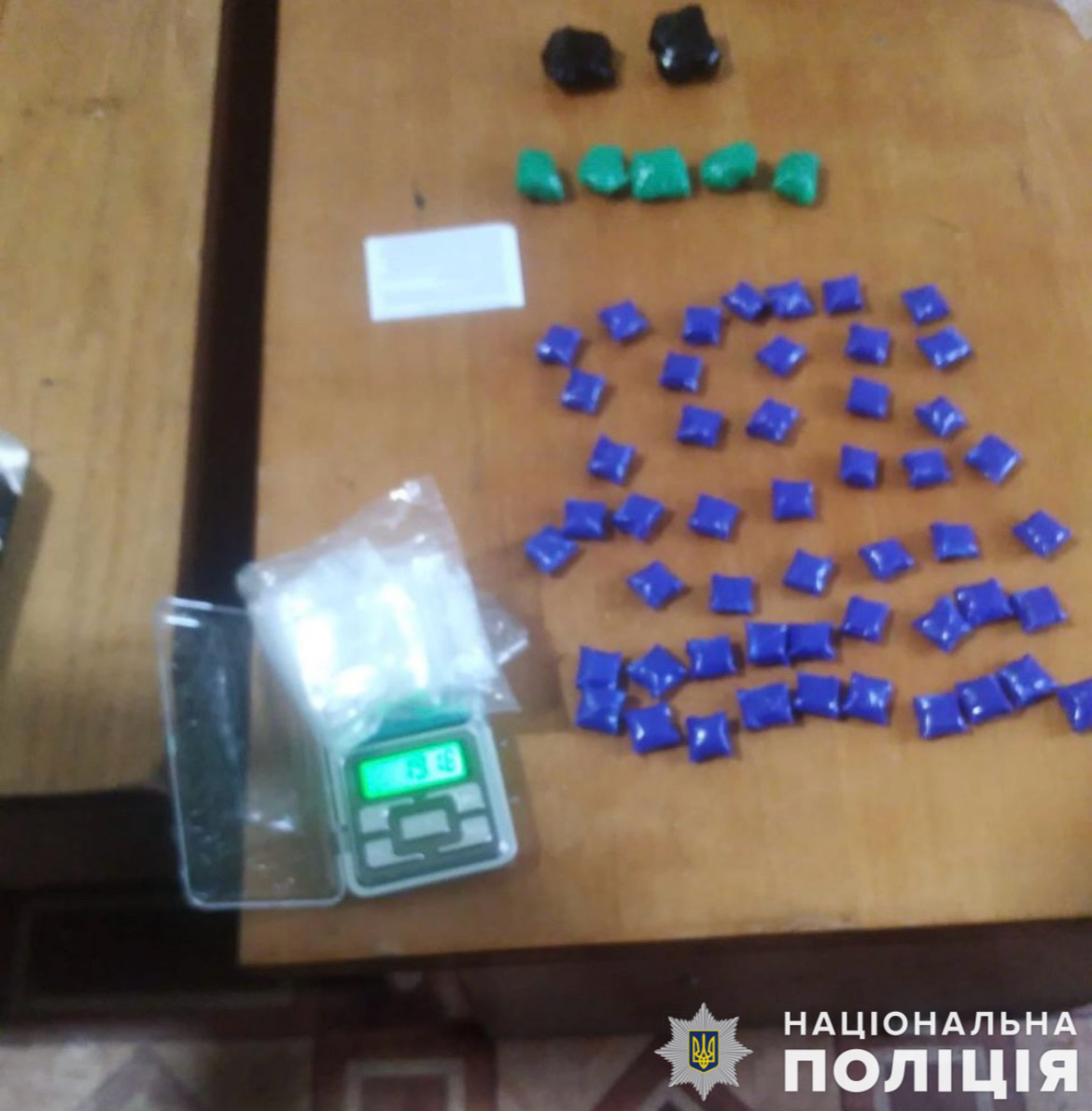 При проведенні невідкладних першочергових слідчих дій у 23-річного зловмисника, під час його чергового «візиту» до міста, слідчі разом із оперуповноваженими, дільничними та криміналістом виявили і вилучили електронні ваги та розфасовані згортки з липкої стрічки і прозорі зіп-пакетики з кристалічним порошком в загальній кількісті 80 штук. Частину закладок зловмисник уже встиг розкласти, однак 72 згортки поліцейські виявили при ньому.
