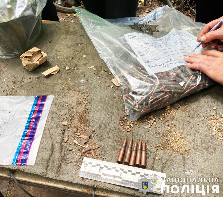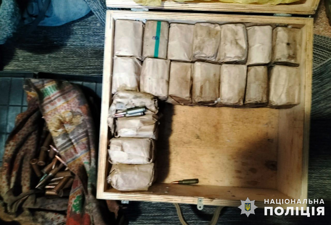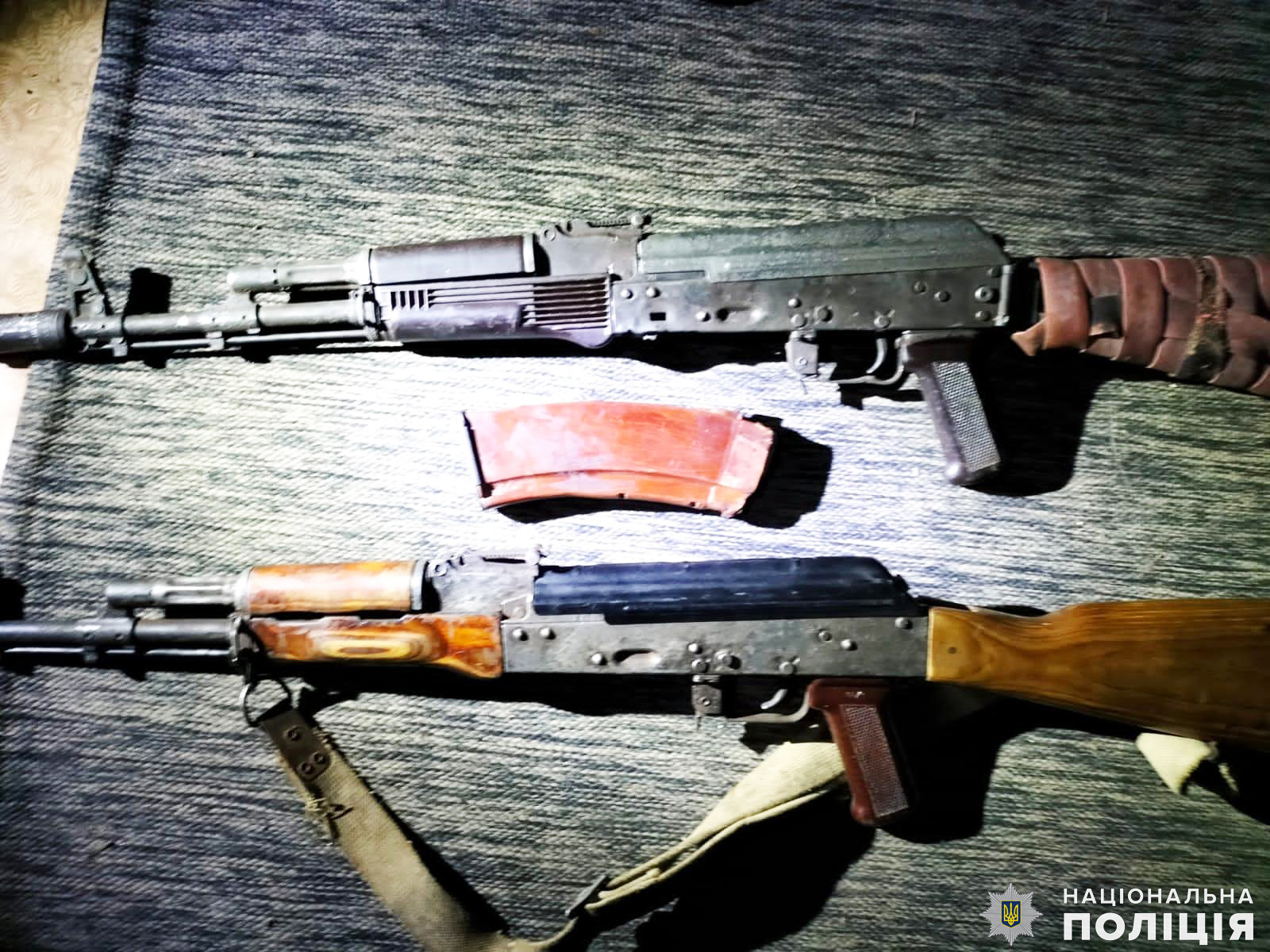 У ході обшуку домоволодіння третього фігуранта співробітники поліції виявили та вилучили два автомати Калашникова, набої до автоматичної зброї - 1142 калібру 5,45 та 85 шт калібру 7,62, шість порохових зарядів, близько кілограма тротилу та близько чотирьох кілограмів артилерійського пороху.