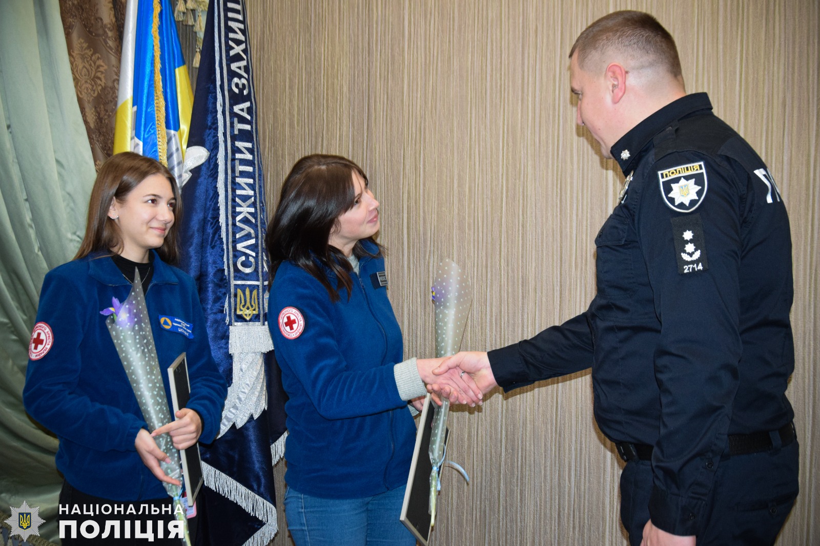 Сьогодні, 5 грудня, у День волонтера, т.в.о. заступника начальника обласного главку поліції Віталій Даніла вручив інструкторкам аварійно-рятувальної служби Миколаївської організації Товариства Червоного Хреста України подяки за допомогу та навчання поліцейських.