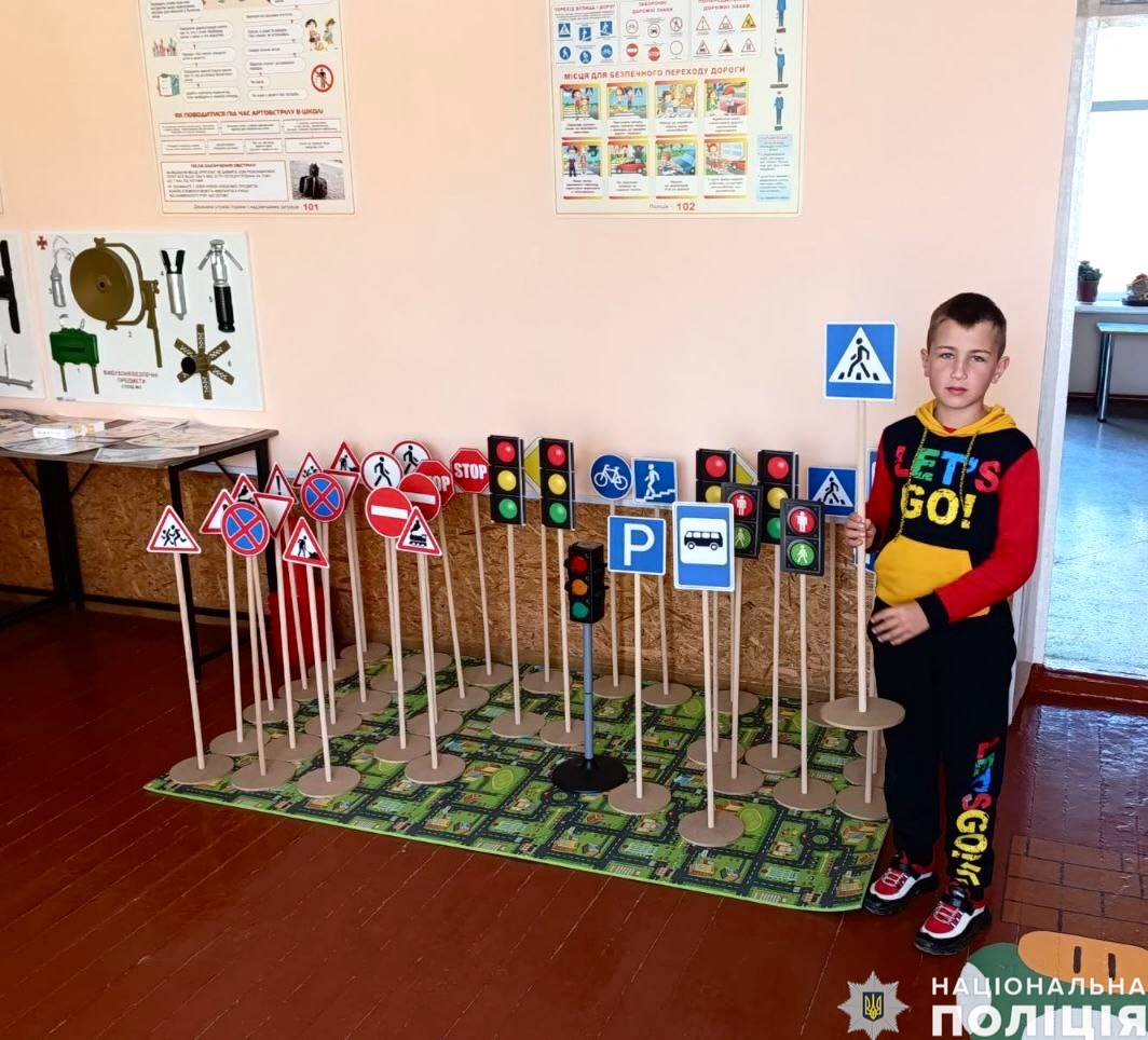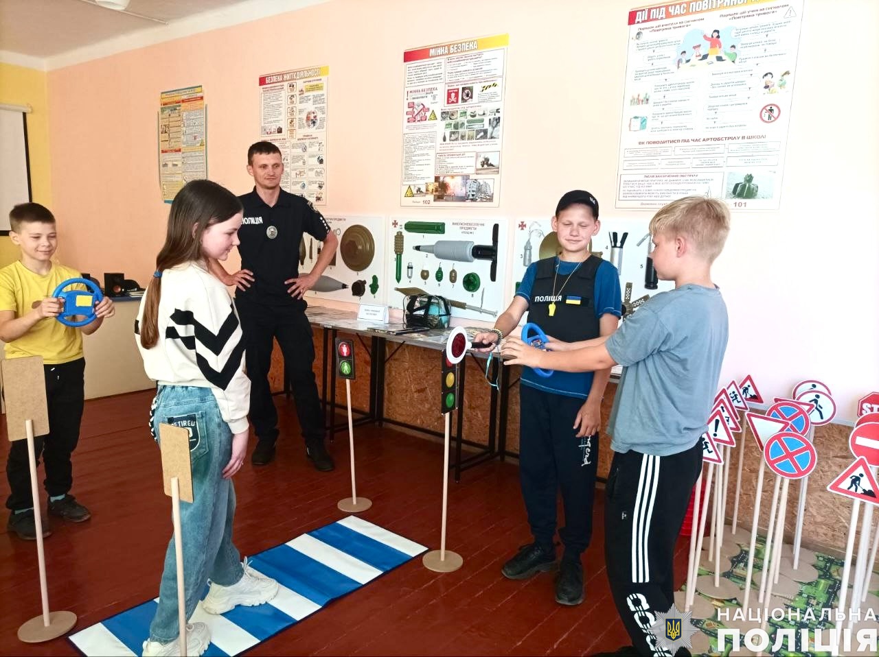 Поліцейський розпочав інтерактивне заняття із дорожньої грамоти: роз’яснив значення дорожніх знаків, що регулюють рух пішоходів, нагадав як поводитися поблизу автодороги та як перетинати проїжджу частину дороги. Також розповів про безпечне користування велосипедами та самокатами, аби не стати учасником дорожньо-транспортної пригоди та не травмуватися. Зауважив шериф поліції і на необхідності використання світловідбивних елементів на одязі дітей у темну пору доби, аби бути краще помітними для інших учасників дорожнього руху.