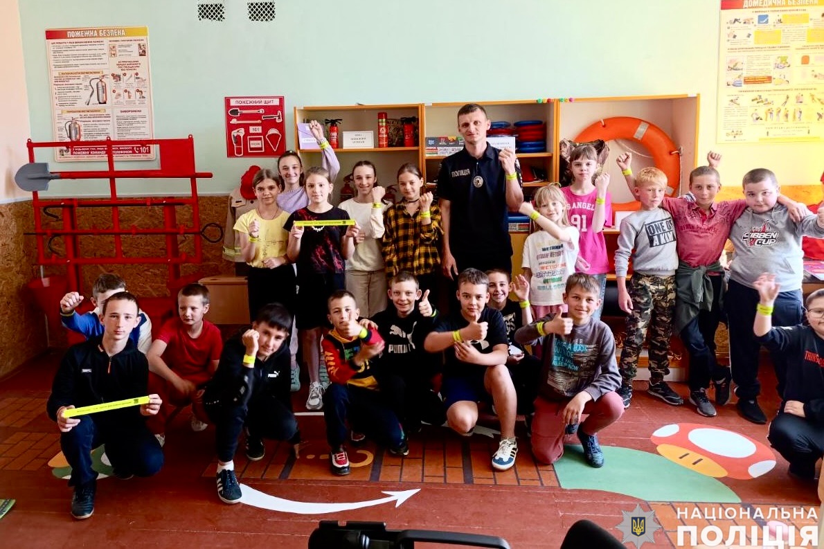 На згадку про зустріч, правоохоронець подарував школярам світловідбиваючи браслети та нагадав, що поліцейські завжди поруч і готові прийти на допомогу у разі потреби, для цього необхідно зателефонувати на спецлінію 102.