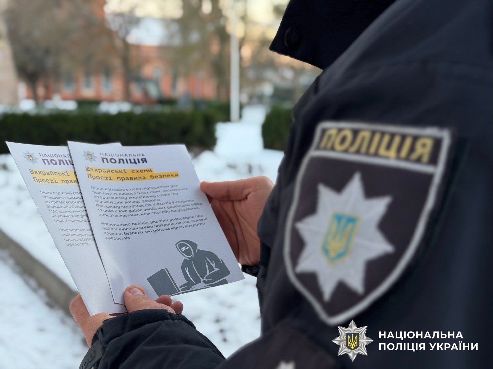 Щоб громадяни розуміли усі ризики бути ошуканими, поліцейський роздав буклети, в яких описуються схеми шахрайств та алгоритм дій як не потрапити до рук аферистів.