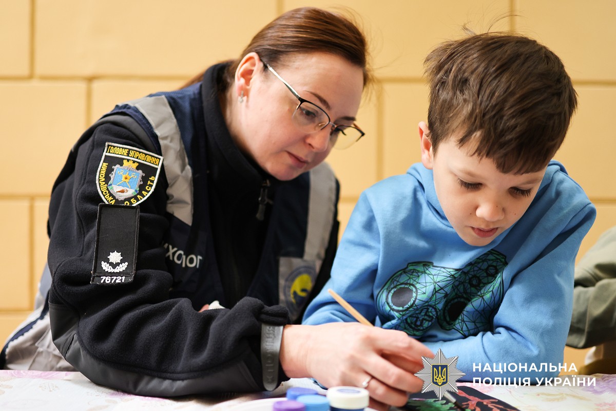 Зимові пейзажі на папері: у Миколаєві поліцейські психологи організували терапевтичний захід для дітей колег у стінах художнього музею