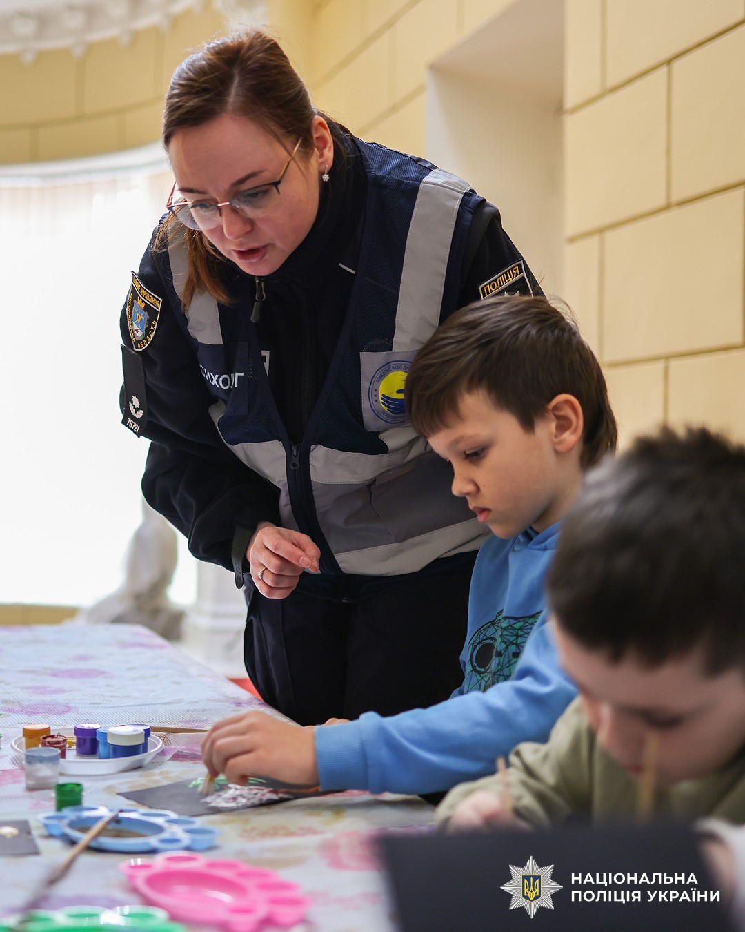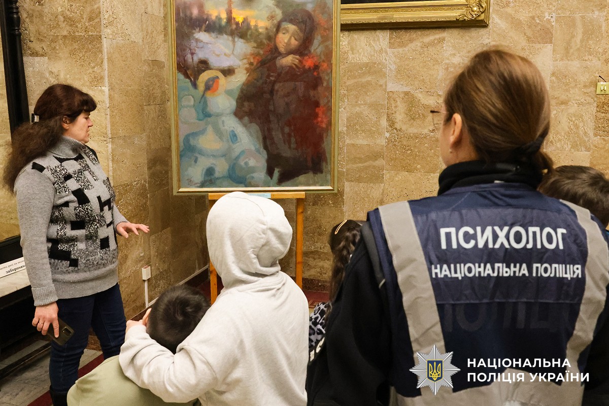 Сьогодні музейна зала стала осередком емоційного відновлення дітей правоохоронців. Арттерапевтичний захід психологи поліції організували у межах реалізації проєкту «Пункт психологічних практик».