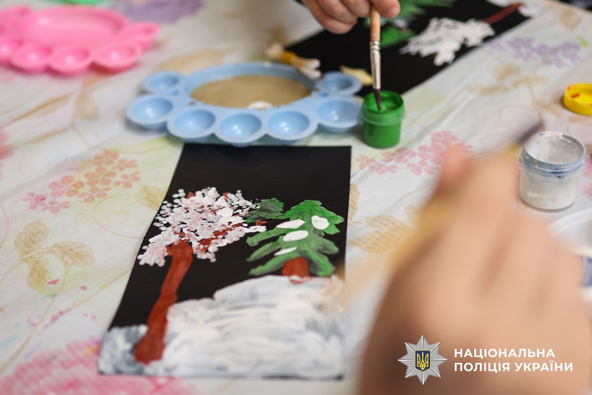 Діти разом із поліцейською відділу психологічного забезпечення обласного главку поліції та науковим співробітником музею, вчились за допомогою фарб та пензлів створювати власні зимові пейзажі. Арттерапія для дітей, які пережили стрес, тривогу або страх за близьких, є особливо дієвим інструментом. Через творчий процес дитина вчиться розпізнавати та безпечно виражати емоції, знижувати рівень напруги й відновлювати відчуття контролю та впевненості. Майстер-клас був побудований так, щоб кожна дитина відчувала підтримку, прийняття та свободу самовираження.